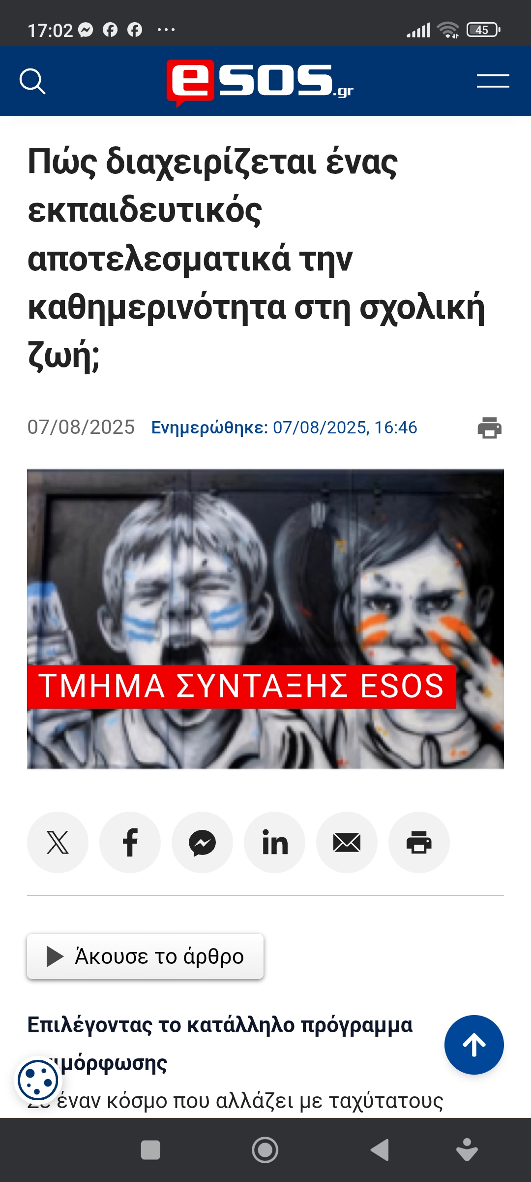 Εκπαίδευση / ΠολιτισμόςΕτήσιο πρόγραμμα του Ανοικτού Πανεπιστημίου. Διαχείριση πίεσης στην τάξη Πέτρος Ιωάννου8 μήνες ago8 μήνες ago01 mins 8/8/2025 https://www.esos.gr/arthra/94688/pos-diaheirizetai-enas-ekpaideytikos-apotelesmatika-tin-kathimerinotita-sti-sholiki Πλοήγηση άρθρων Previous: Ο Γιάννης Πανούσης αναλύει την οπαδική βία και την απόδοση των κυβερν. μέτρωνNext: Επιχείρηση “Οδυσσέας” Αφήστε μια απάντηση Ακύρωση απάντησηςΗ ηλ. διεύθυνση σας δεν δημοσιεύεται. Τα υποχρεωτικά πεδία σημειώνονται με *Σχόλιο * Όνομα * Email * Ιστότοπος Αποθήκευσε το όνομά μου, email, και τον ιστότοπο μου σε αυτόν τον πλοηγό για την επόμενη φορά που θα σχολιάσω.