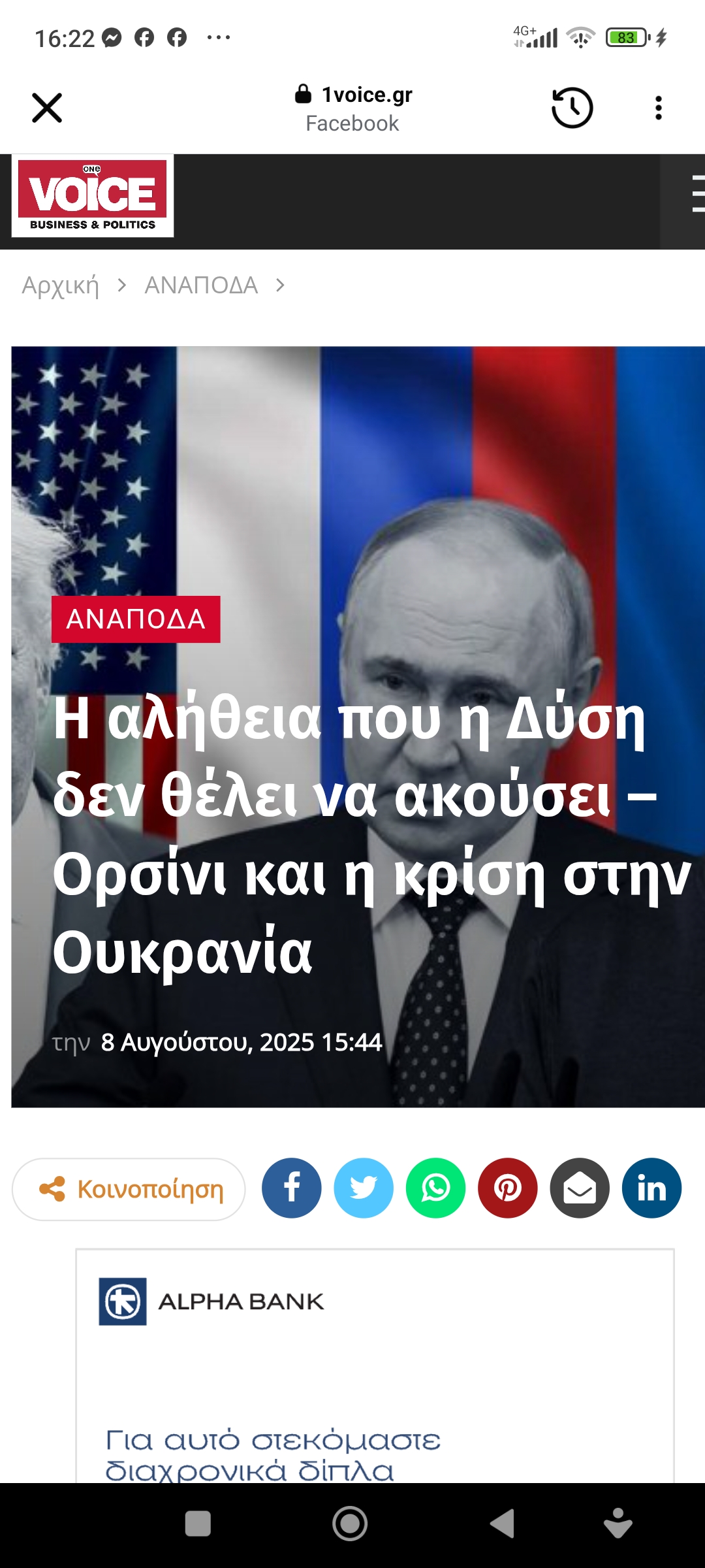 Eυρώπη / ΔιεθνήΑλεσάντρο Ορσίνι: Ήδη οι ΗΠΑ εξέθεσαν τους Ουκρανούς στη ρωσική απειλή. Θα το επαναλάβουν και στην περίπτωση πυρηνικού χτυπήματος στο Κίεβο Πέτρος Ιωάννου8 μήνες ago8 μήνες ago01 mins 9/8/2025 Η αλήθεια που η Δύση δεν θέλει να ακούσει – Ορσίνι και η κρίση στην Ουκρανία αλιευμένο από: Ανδρέα Ρουμελιώτη Πλοήγηση άρθρων Previous: Αλέκος Σακελλάριος, εις εμαυτόν και περί νεοελλήνωνNext: Μάτια που μιλάνε Αφήστε μια απάντηση Ακύρωση απάντησηςΗ ηλ. διεύθυνση σας δεν δημοσιεύεται. Τα υποχρεωτικά πεδία σημειώνονται με *Σχόλιο * Όνομα * Email * Ιστότοπος Αποθήκευσε το όνομά μου, email, και τον ιστότοπο μου σε αυτόν τον πλοηγό για την επόμενη φορά που θα σχολιάσω.