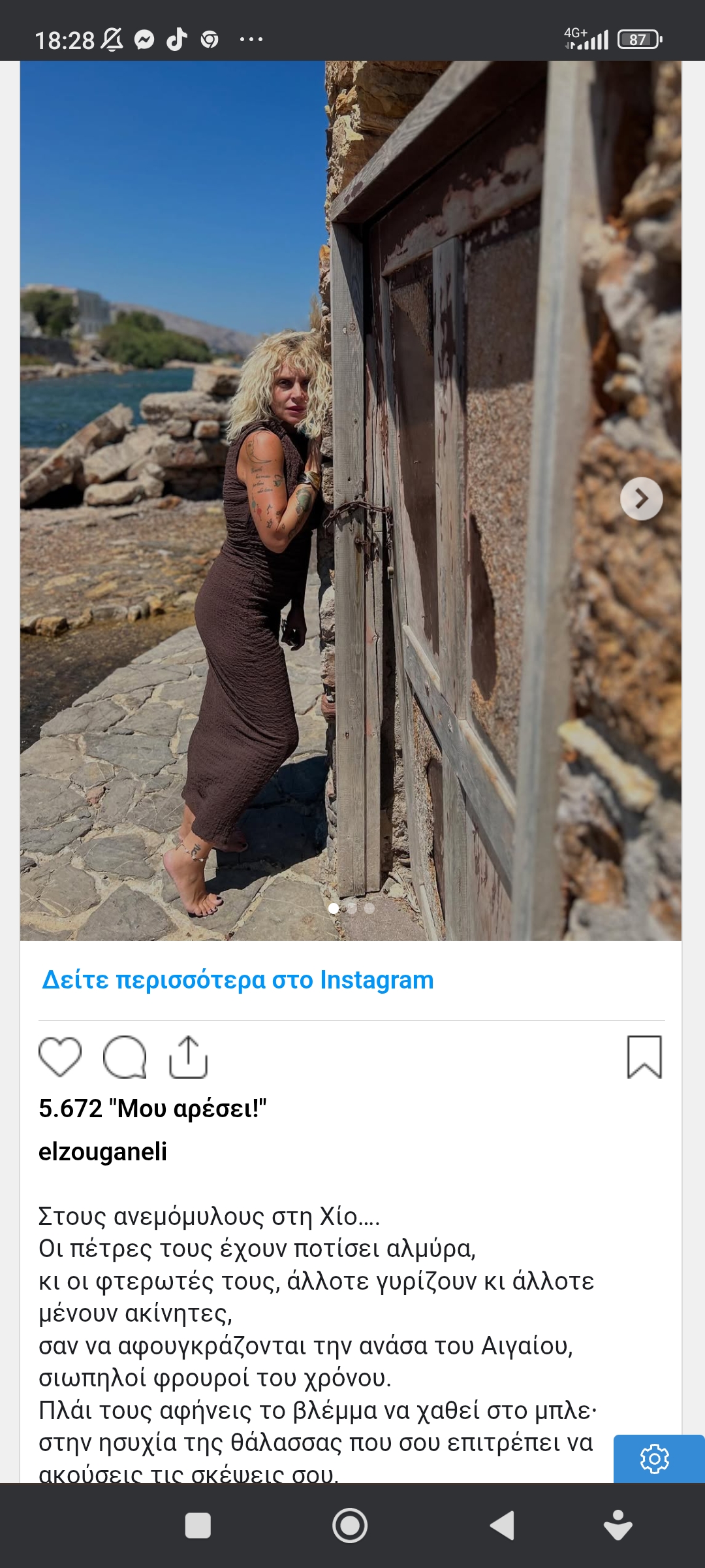 Εκπαίδευση / ΠολιτισμόςΖουγανέλη: Στη θάλασσα αφήνω τις σκέψεις μου, γίνονται κύματα χάνονται. Πέτρος Ιωάννου8 μήνες ago8 μήνες ago01 mins Συντροφιά μου το μπλε κι ο άνεμος, ό,τι με βαραίνει βρίσκει δρόμο να φύγει 9/8/2025 Ελεωνόρα Ζουγανέλη: Η ποιητική ανάρτηση της από τη Χίο – «Θέλω να ζήσω ενωμένη και ολόκληρη» Πλοήγηση άρθρων Previous: Σκίτσο του Ηλία Μακρή για την ΚαθημερινήNext: Δριμύ κατηγορώ στον πρέσβη του Ισραήλ στη Λευκωσία Ορέν Ανόλικ για την Ισραηλινή βαρβαρότητα Αφήστε μια απάντηση Ακύρωση απάντησηςΗ ηλ. διεύθυνση σας δεν δημοσιεύεται. Τα υποχρεωτικά πεδία σημειώνονται με *Σχόλιο * Όνομα * Email * Ιστότοπος Αποθήκευσε το όνομά μου, email, και τον ιστότοπο μου σε αυτόν τον πλοηγό για την επόμενη φορά που θα σχολιάσω.