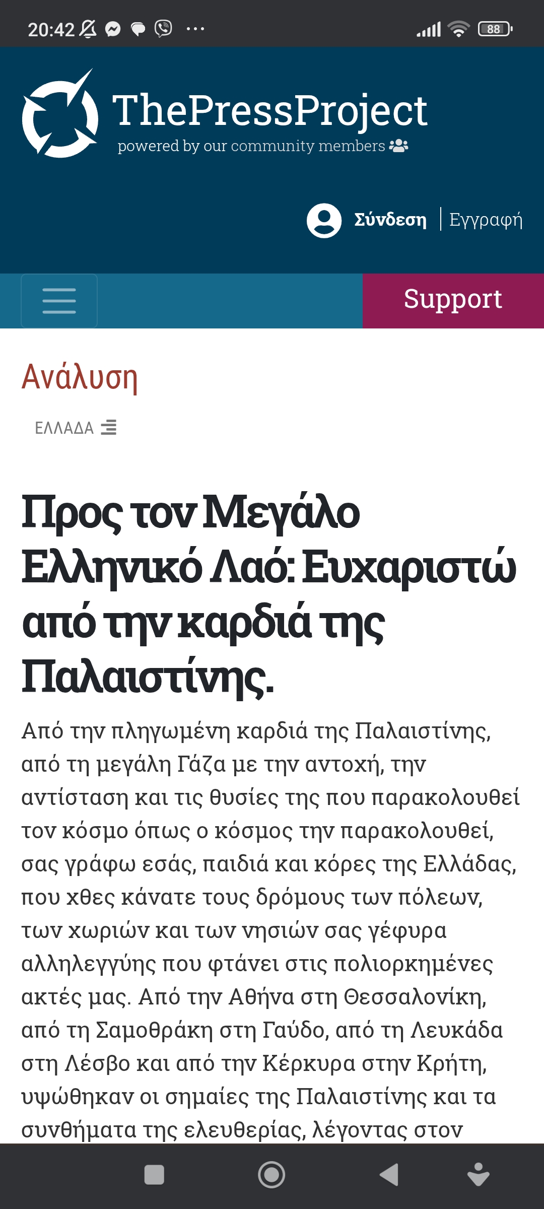 Eυρώπη / Διεθνή Ελλάδα / ΚύπροςΈνα ευχαριστώ στον μεγάλο ελληνικό λαό από την καρδιά της Παλαιστίνης Πέτρος Ιωάννου8 μήνες ago8 μήνες ago01 mins 11/8/2025 https://thepressproject.gr/pros-ton-megalo-elliniko-lao-efcharisto-apo-tin-kardia-tis-palaistinis Πλοήγηση άρθρων Previous: Κινητικότητα αμυντική στην ΚύπροNext: Μαρούπα Ειρήνη: Γιατί άραγε δεν υπάρχει εμπιστοσύνη στη Δικαιοσύνη; Αφήστε μια απάντηση Ακύρωση απάντησηςΗ ηλ. διεύθυνση σας δεν δημοσιεύεται. Τα υποχρεωτικά πεδία σημειώνονται με *Σχόλιο * Όνομα * Email * Ιστότοπος Αποθήκευσε το όνομά μου, email, και τον ιστότοπο μου σε αυτόν τον πλοηγό για την επόμενη φορά που θα σχολιάσω.