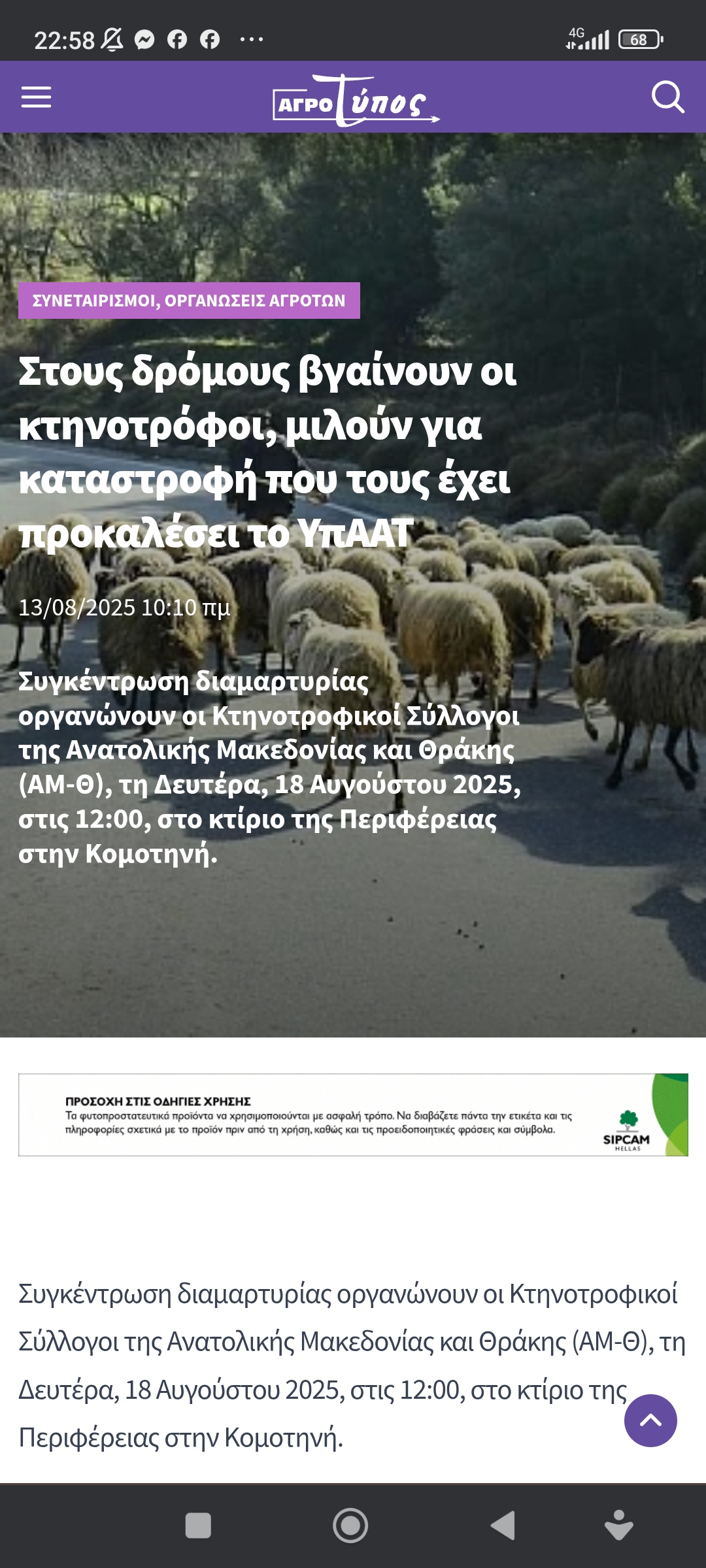 ΟικονομίαΚτηνοτρόφοι σε απόγνωση Πέτρος Ιωάννου8 μήνες ago8 μήνες ago01 mins 13/8/2025 https://www.agrotypos.gr/stous-dromous-vgainoun-oi-ktinotrofoi-miloun-gia-katastrofi-pou-tous-echei-prokalesei-to-ypaat Πλοήγηση άρθρων Previous: Πλατάνια σε κίνδυνοNext: Πεθαίνουν και τα έλατα… Αφήστε μια απάντηση Ακύρωση απάντησηςΗ ηλ. διεύθυνση σας δεν δημοσιεύεται. Τα υποχρεωτικά πεδία σημειώνονται με *Σχόλιο * Όνομα * Email * Ιστότοπος Αποθήκευσε το όνομά μου, email, και τον ιστότοπο μου σε αυτόν τον πλοηγό για την επόμενη φορά που θα σχολιάσω.