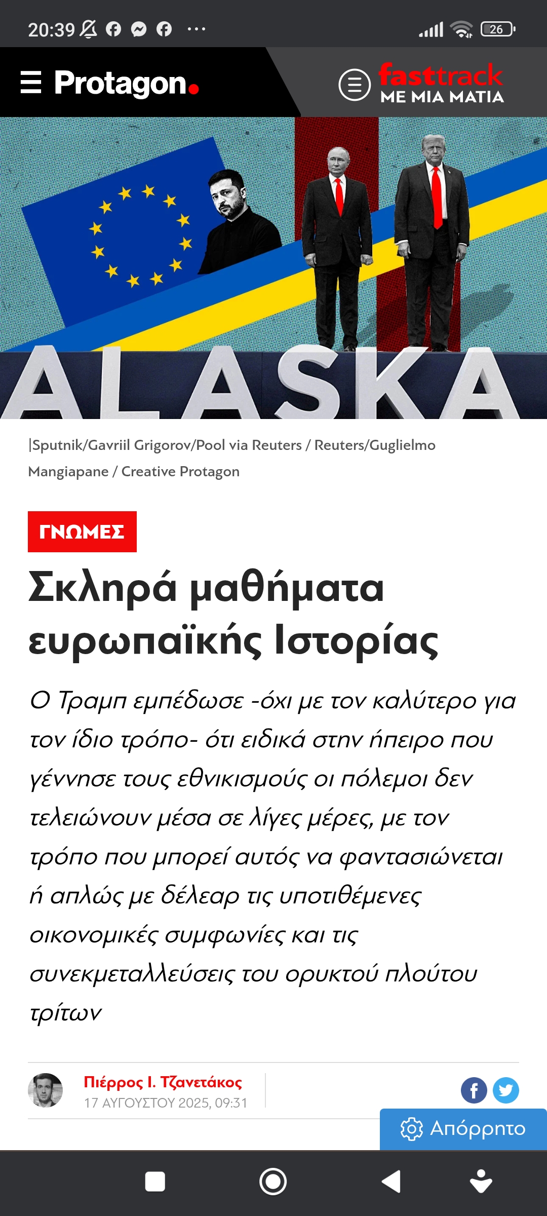 Eυρώπη / Διεθνή ΙστορίαΣκληρά μαθήματα … Πέτρος Ιωάννου8 μήνες ago8 μήνες ago01 mins 17/8/2025 Σκληρά μαθήματα ευρωπαϊκής Ιστορίας Πλοήγηση άρθρων Previous: Η βασίλισσα των αρετώνNext: Περιοχές που μαγνήτισαν τους ξένους Αφήστε μια απάντηση Ακύρωση απάντησηςΗ ηλ. διεύθυνση σας δεν δημοσιεύεται. Τα υποχρεωτικά πεδία σημειώνονται με *Σχόλιο * Όνομα * Email * Ιστότοπος Αποθήκευσε το όνομά μου, email, και τον ιστότοπο μου σε αυτόν τον πλοηγό για την επόμενη φορά που θα σχολιάσω.
