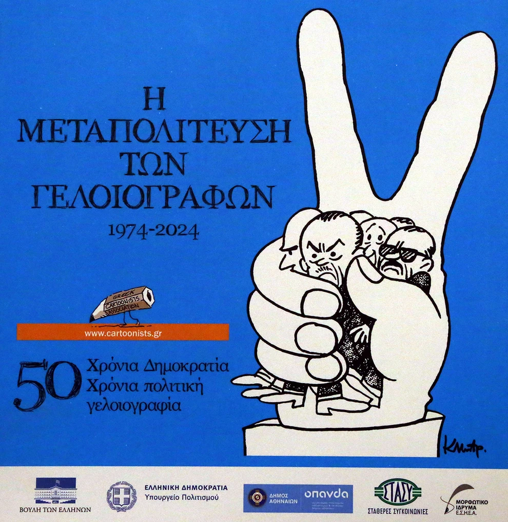 Εξήντα επτά γελοιογράφοι εκθέτουν 423 γελοιογραφίες, σκιαγραφώντας, μέσα από τα έργα τους, 50 χρόνια αδιάκοπης Δημοκρατίας, από τον Ιούλιο του 1974 με την πτώση της Χούντας μέχρι σήμερα.
