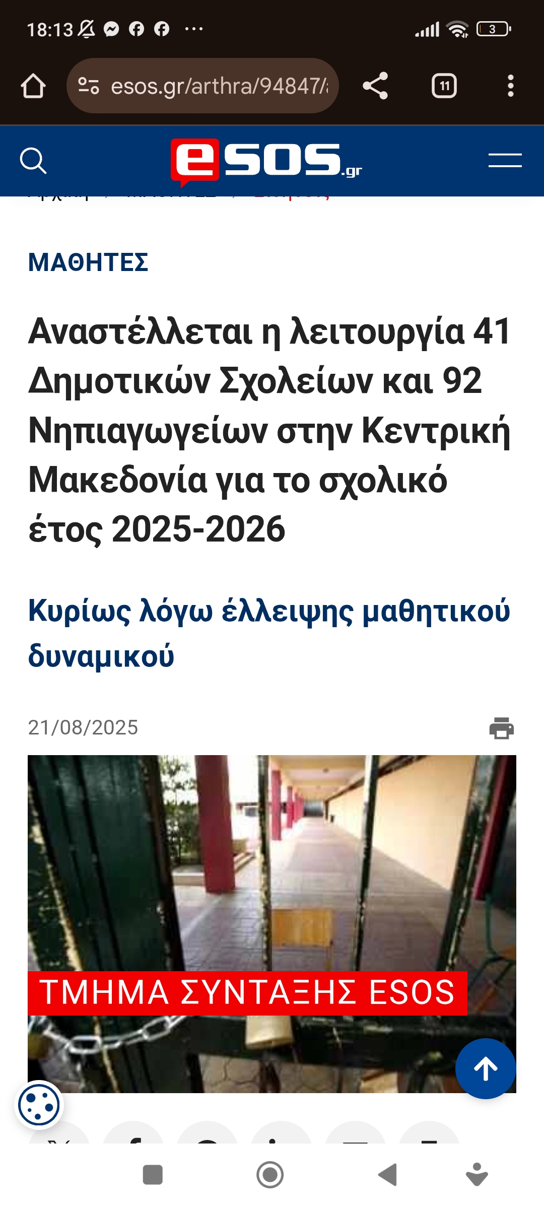 Εκπαίδευση / ΠολιτισμόςΛουκέτο σε σχολεία, ελλείψει μαθητών Πέτρος Ιωάννου8 μήνες ago8 μήνες ago01 mins 22/8/2025 https://www.esos.gr/arthra/94847/anastelletai-i-leitoyrgia-41-dimotikon-sholeion-kai-92-nipiagogeion-stin-kentriki Πλοήγηση άρθρων Previous: Απαράδεκτη… Αρνήθηκε να παραλάβει την παραγγελία, γιατί ο διανομέας δεν ήταν ΈλληναςNext: Εμμανουήλ Κριαράς, αμείλικτος και πράος Αφήστε μια απάντηση Ακύρωση απάντησηςΗ ηλ. διεύθυνση σας δεν δημοσιεύεται. Τα υποχρεωτικά πεδία σημειώνονται με *Σχόλιο * Όνομα * Email * Ιστότοπος Αποθήκευσε το όνομά μου, email, και τον ιστότοπο μου σε αυτόν τον πλοηγό για την επόμενη φορά που θα σχολιάσω.