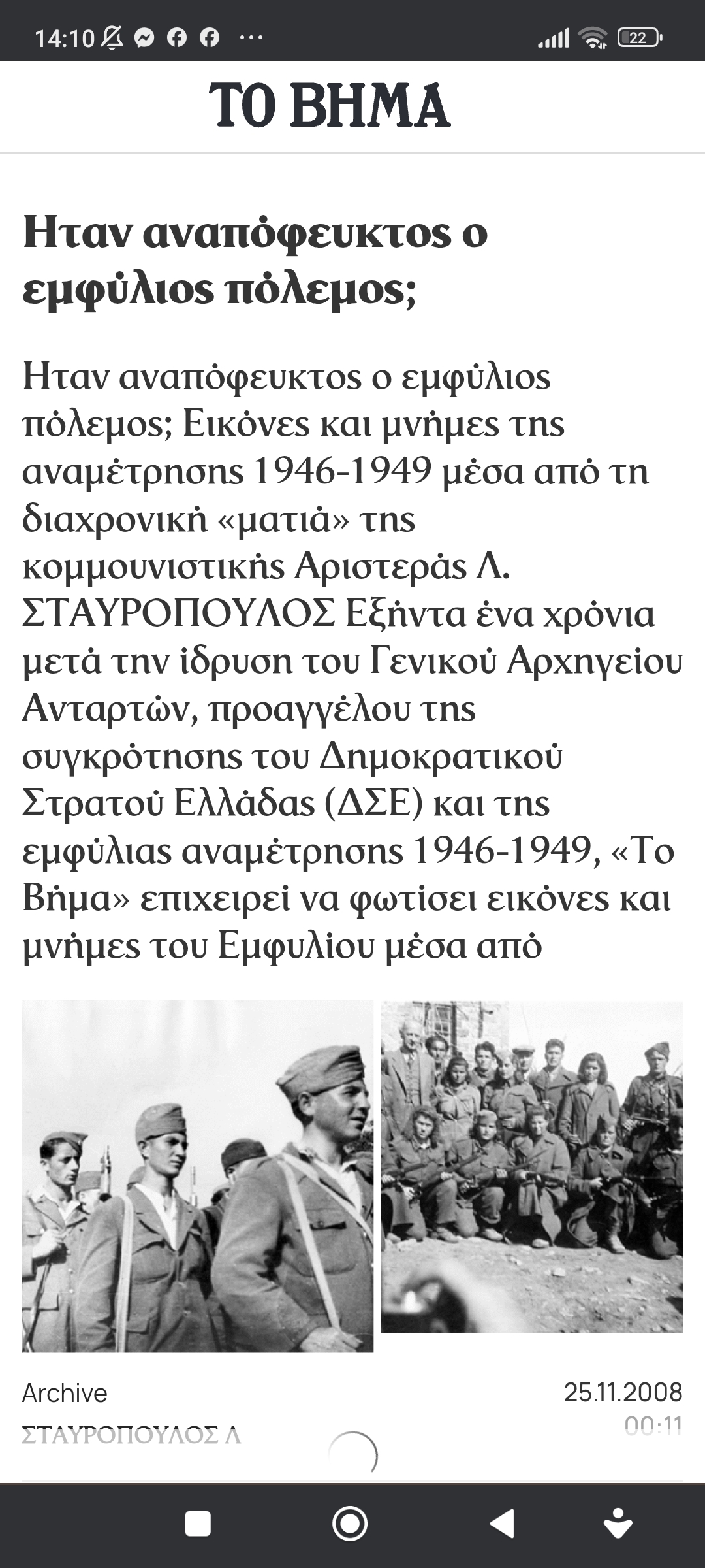 Έγκλημα και τιμωρία ΙστορίαΉταν αναπόφευκτος ο εμφύλιος; Πέτρος Ιωάννου8 μήνες ago8 μήνες ago01 mins 25/11/2008 https://www.tovima.gr/2008/11/25/archive/itan-anapofeyktos-o-emfylios-polemos/amp Πλοήγηση άρθρων Previous: Ποιοί κέρδισαν στον εμφύλιο;Next: Τέλειωσε ποτέ ο εμφύλιος στην Ελλάδα; Αφήστε μια απάντηση Ακύρωση απάντησηςΗ ηλ. διεύθυνση σας δεν δημοσιεύεται. Τα υποχρεωτικά πεδία σημειώνονται με *Σχόλιο * Όνομα * Email * Ιστότοπος Αποθήκευσε το όνομά μου, email, και τον ιστότοπο μου σε αυτόν τον πλοηγό για την επόμενη φορά που θα σχολιάσω.