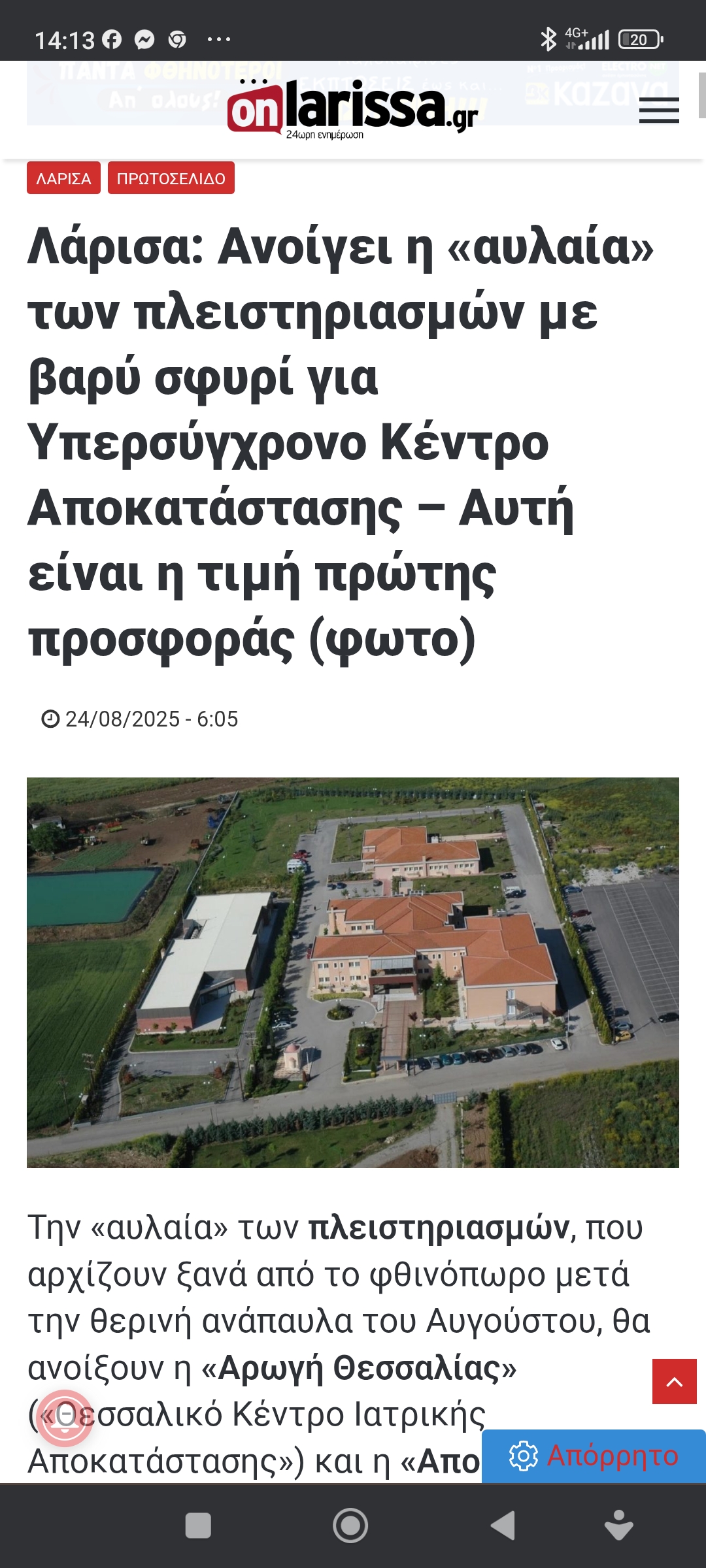 Θεσσαλία / Λάρισα ΟικονομίαΣτο σφυρί ακίνητα “καλών” παικτών Πέτρος Ιωάννου8 μήνες ago8 μήνες ago01 mins 25/8/2025 https://www.onlarissa.gr/2025/08/24/larisa-anoigei-i-avlaia-ton-pleistiriasmon-me-neo-vary-sfyri-gia-ypersynchrono-kentro-apokatastasis-poia-einai-i-timi-protis-prosforas-foto Πλοήγηση άρθρων Previous: Η καλημέρα του ΑρκάNext: Διάκριση για τον πρωθυπουργεύοντα Αφήστε μια απάντηση Ακύρωση απάντησηςΗ ηλ. διεύθυνση σας δεν δημοσιεύεται. Τα υποχρεωτικά πεδία σημειώνονται με *Σχόλιο * Όνομα * Email * Ιστότοπος Αποθήκευσε το όνομά μου, email, και τον ιστότοπο μου σε αυτόν τον πλοηγό για την επόμενη φορά που θα σχολιάσω.