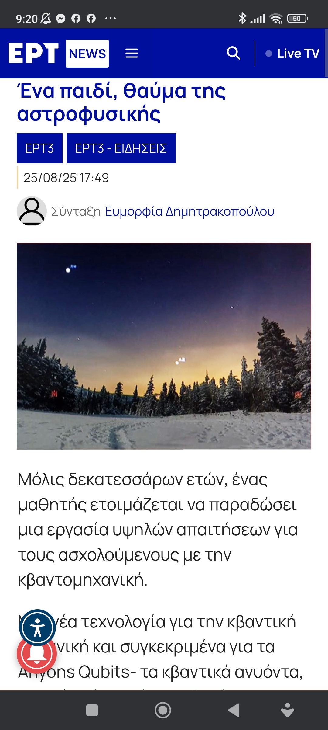 Εκπαίδευση / Πολιτισμός Όσοι ξεχωρίζουνΒίκτωρ Γιαννικόπουλος, κοντά στο “θαύμα” (ΝΑΣΑ) Πέτρος Ιωάννου8 μήνες ago8 μήνες ago01 mins 26/8/2025 Ένα παιδί, θαύμα της αστροφυσικής Πλοήγηση άρθρων Previous: Σκίτσο του Κώστα Μητρόπουλου για τα ΝΕΑNext: Ξέρατε ότι Αφήστε μια απάντηση Ακύρωση απάντησηςΗ ηλ. διεύθυνση σας δεν δημοσιεύεται. Τα υποχρεωτικά πεδία σημειώνονται με *Σχόλιο * Όνομα * Email * Ιστότοπος Αποθήκευσε το όνομά μου, email, και τον ιστότοπο μου σε αυτόν τον πλοηγό για την επόμενη φορά που θα σχολιάσω.