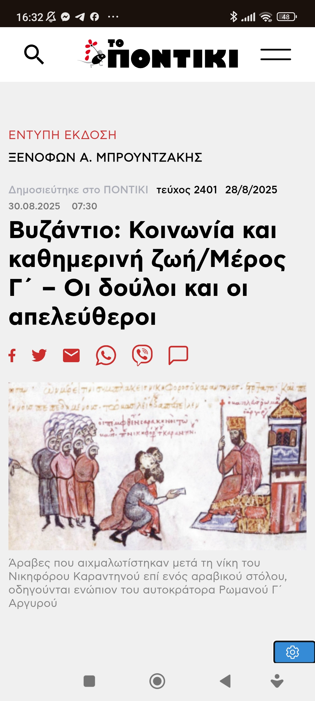ΙστορίαΒυζάντιο: Κοινωνία και καθημερινότητα Πέτρος Ιωάννου8 μήνες ago8 μήνες ago01 mins 31/8/2025 Βυζάντιο: Κοινωνία και καθημερινή ζωή/Μέρος Γ΄ – Οι δούλοι και οι απελεύθεροι Πλοήγηση άρθρων Previous: Αρκάς: Για να πετύχεις στην πολιτικήNext: Ε ϊνάβ Ζανγκαουκέρ : Νετανιάχου αν γυρίσετε το γιό μου σε σακούλα, θα σε μηνύσω για φόνο Αφήστε μια απάντηση Ακύρωση απάντησηςΗ ηλ. διεύθυνση σας δεν δημοσιεύεται. Τα υποχρεωτικά πεδία σημειώνονται με *Σχόλιο * Όνομα * Email * Ιστότοπος Αποθήκευσε το όνομά μου, email, και τον ιστότοπο μου σε αυτόν τον πλοηγό για την επόμενη φορά που θα σχολιάσω.