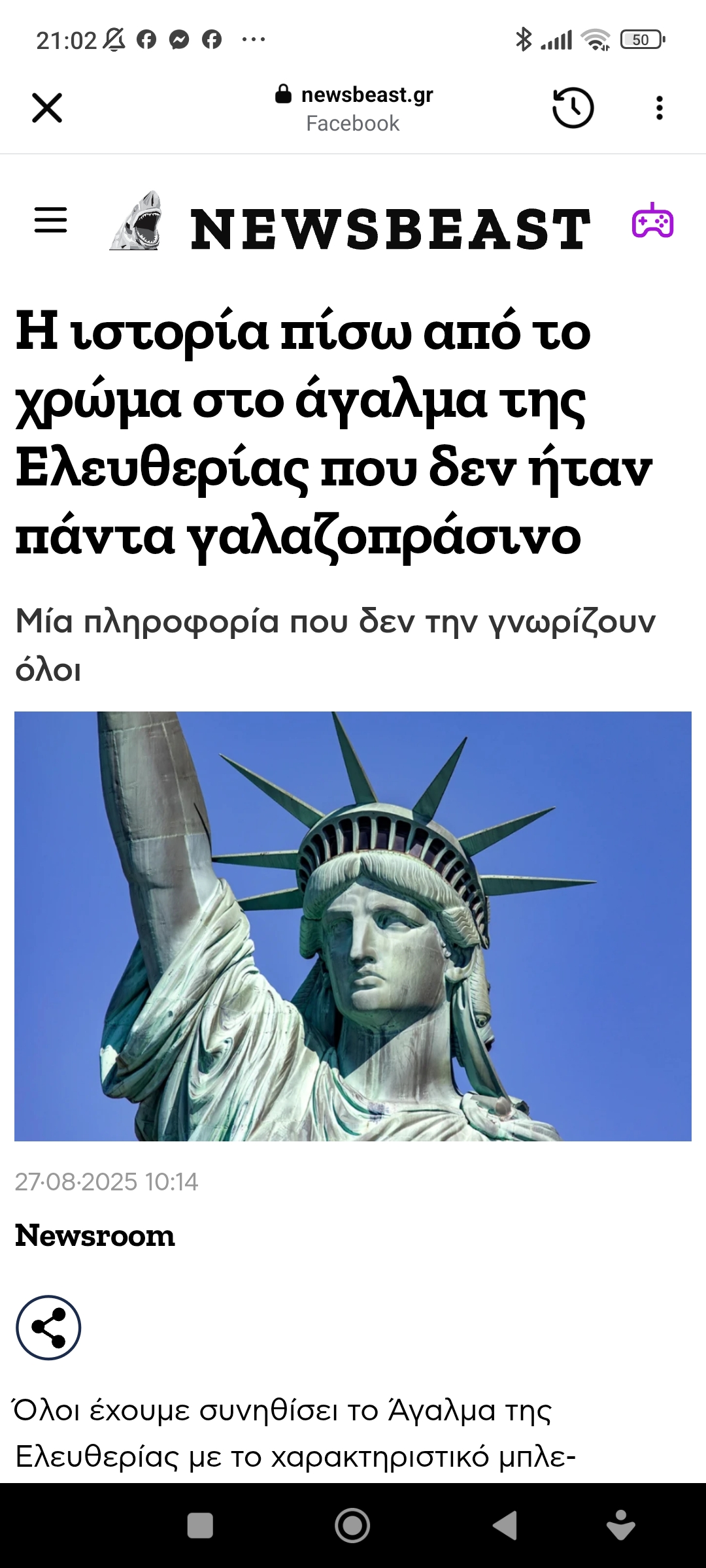 Eυρώπη / ΔιεθνήΟι αποχρώσεις στο άγαλμα της Ελευθερίας Πέτρος Ιωάννου8 μήνες ago8 μήνες ago01 mins 1/8/2025 https://www.newsbeast.gr/weird/arthro/12525267/i-istoria-piso-apo-to-chroma-sto-agalma-tis-eleftherias-pou-den-itan-panta-galazoprasino?fbclid=IwVERDUAMivxRleHRuA2FlbQIxMAABHvmXD8ipW3dE710UoS4aFtVsvh4geOt6DBjyYKysJssiYOcW07utOJgnwYXd_aem_y-LZl4_z0tAez7V_ewAcug Πλοήγηση άρθρων Previous: Ακυρώθηκε η συναυλία για τα ΤέμπηNext: Η κοινωνική μας παρακμή Αφήστε μια απάντηση Ακύρωση απάντησηςΗ ηλ. διεύθυνση σας δεν δημοσιεύεται. Τα υποχρεωτικά πεδία σημειώνονται με *Σχόλιο * Όνομα * Email * Ιστότοπος Αποθήκευσε το όνομά μου, email, και τον ιστότοπο μου σε αυτόν τον πλοηγό για την επόμενη φορά που θα σχολιάσω.