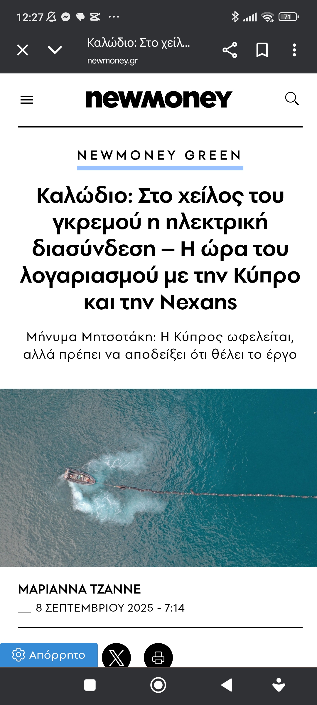 Άμυνα / Στρατηγική ΟικονομίαΚαι να μη χρειαζόταν έπρεπε να το ανακαλύψουν. Κατάντια 2 χωρών… Πέτρος Ιωάννου7 μήνες ago7 μήνες ago01 mins 8/9/2025 Καλώδιο: Στο χείλος του γκρεμού η ηλεκτρική διασύνδεση – Η ώρα του λογαριασμού με την Κύπρο και την Nexans Πλοήγηση άρθρων Previous: “Μη με Λησμόνει”. Η μνήμη που χάθηκε, τα συναισθήματα που μένουνNext: Η καλημέρα του Αρκά Αφήστε μια απάντηση Ακύρωση απάντησηςΗ ηλ. διεύθυνση σας δεν δημοσιεύεται. Τα υποχρεωτικά πεδία σημειώνονται με *Σχόλιο * Όνομα * Email * Ιστότοπος Αποθήκευσε το όνομά μου, email, και τον ιστότοπο μου σε αυτόν τον πλοηγό για την επόμενη φορά που θα σχολιάσω.