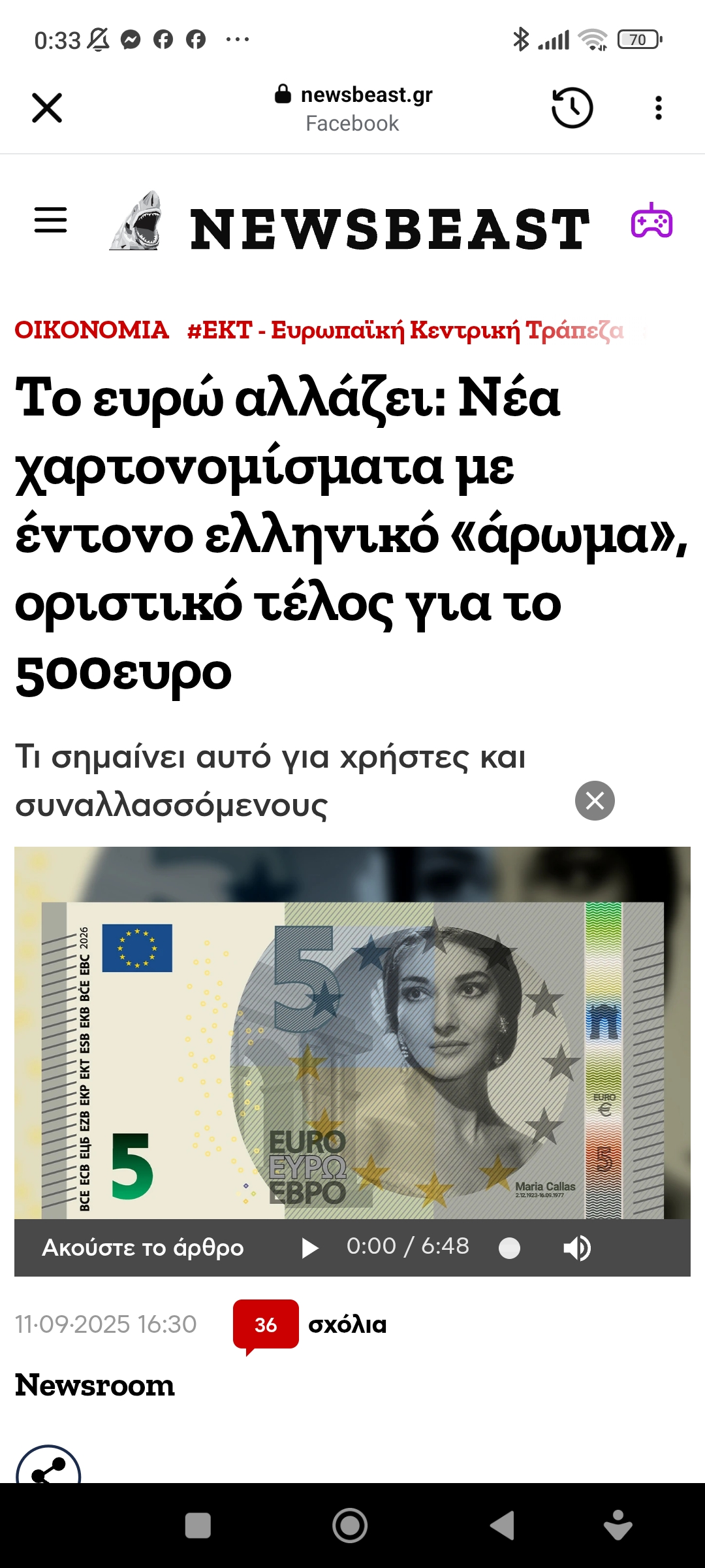 ΟικονομίαΤο Ευρώ αλλάζει. Τα νέα χαρτονομίσματα Πέτρος Ιωάννου7 μήνες ago7 μήνες ago01 mins 11/9/2025 https://www.newsbeast.gr/financial/arthro/12564011/to-evro-allazei-nea-chartonomismata-me-entono-elliniko-aroma-oristiko-telos-gia-to-500evro?fbclid=IwdGRjcAMwH51jbGNrAzAfhWV4dG4DYWVtAjExAAEeBJVAFt9MKwpVU34AJqje7Qgr_1TiOUUMxRIyfQ8ckClI1lnRfl0Cbde1Iyw_aem_oLq4ESS9yXEfziIGx9naMQ Πλοήγηση άρθρων Previous: Η Κρήτη δεν έχει μόνο συμμορίες κερδοσκόπων, έχει κι ωραίους ανθρώπουςNext: …κάποτε τη σφενδόνα την κρατούσε ένα βοσκόπουλο ο Δαυίδ απέναντι στον Γολιάθ και νίκησε Αφήστε μια απάντηση Ακύρωση απάντησηςΗ ηλ. διεύθυνση σας δεν δημοσιεύεται. Τα υποχρεωτικά πεδία σημειώνονται με *Σχόλιο * Όνομα * Email * Ιστότοπος Αποθήκευσε το όνομά μου, email, και τον ιστότοπο μου σε αυτόν τον πλοηγό για την επόμενη φορά που θα σχολιάσω.