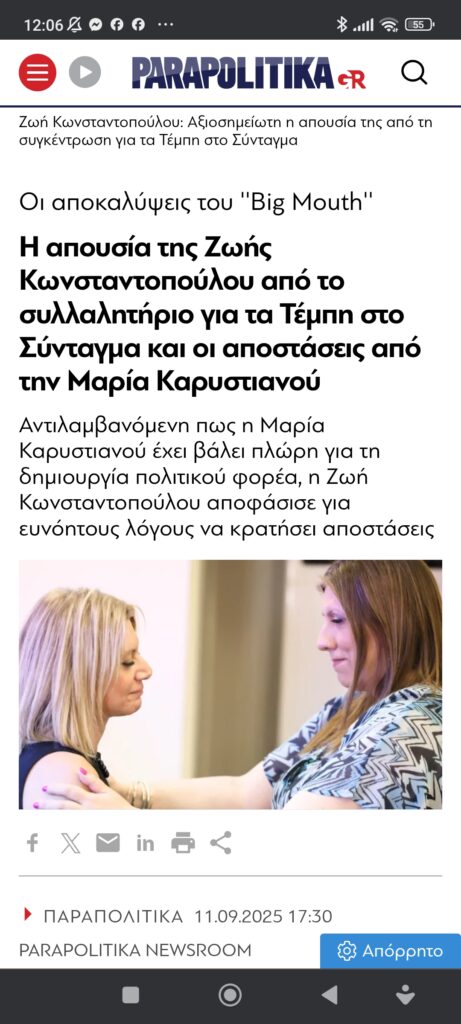 Έγκλημα και τιμωρία Κοινωνία / ΠολιτικήΆλλο οι “πληροφορίες”, άλλη η πραγματικότητα. Εκτιμώ εκ πείρας, πως πρόκειται για “συνεργασίες” και “χυλόπιτες” Πέτρος Ιωάννου7 μήνες ago7 μήνες ago01 mins 12/9/2025 https://www.parapolitika.gr/parapolitika/article/1611292/i-apousia-tis-zois-konstadopoulou-apo-to-sullalitirio-gia-ta-tebi-sto-sudagma-kai-oi-apostaseis-apo-tin-maria-karustianou/?utm_source=projectagora&utm_medium=contentdiscovery Πλοήγηση άρθρων Previous: αποτύχαμεNext: …φαντάζεστε πόση διαφθορά βασιλεύει στα Τίρανα! Ψηφιακή λοιπόν υπουργός – “κόσκινο”… Αφήστε μια απάντηση Ακύρωση απάντησηςΗ ηλ. διεύθυνση σας δεν δημοσιεύεται. Τα υποχρεωτικά πεδία σημειώνονται με *Σχόλιο * Όνομα * Email * Ιστότοπος Αποθήκευσε το όνομά μου, email, και τον ιστότοπο μου σε αυτόν τον πλοηγό για την επόμενη φορά που θα σχολιάσω.