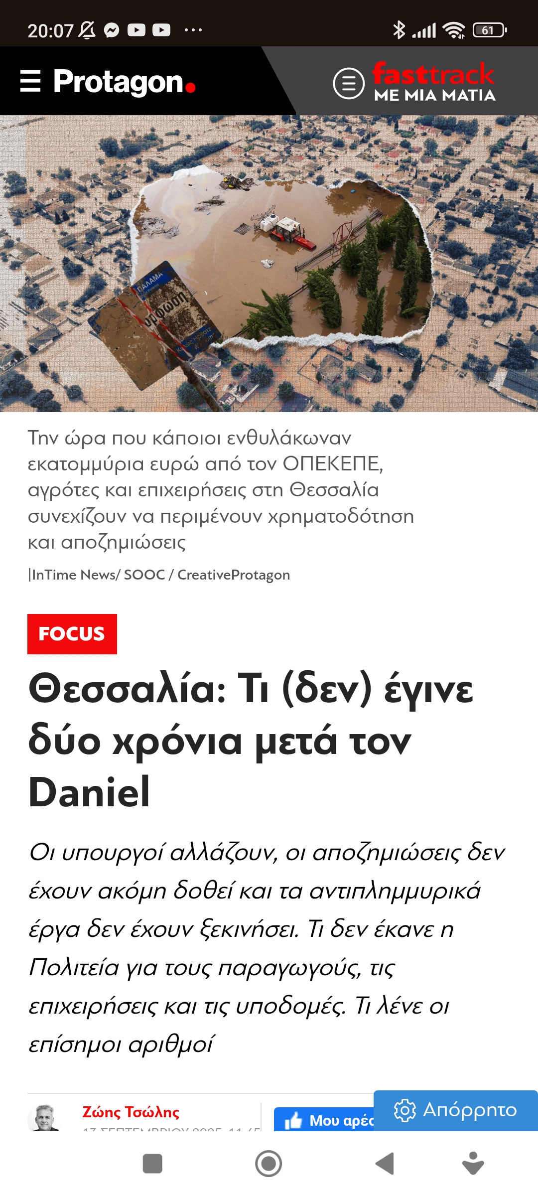 Θεσσαλία / ΛάρισαΘεσσαλία: Τι (δεν) έγινε δύο χρόνια μετά τον Daniel Πηγή: Protagon.gr Πέτρος Ιωάννου7 μήνες ago7 μήνες ago01 mins 13/9/2025 Θεσσαλία: Τι (δεν) έγινε δύο χρόνια μετά τον Daniel Πλοήγηση άρθρων Previous: Απ τις πλέον σοφές κουβεντούλες του ΑρκάNext: Τα κατσάβραχα… “βαμβακοχώροφα” ωραία… Προ πάντων ανάπτυξη Αφήστε μια απάντηση Ακύρωση απάντησηςΗ ηλ. διεύθυνση σας δεν δημοσιεύεται. Τα υποχρεωτικά πεδία σημειώνονται με *Σχόλιο * Όνομα * Email * Ιστότοπος Αποθήκευσε το όνομά μου, email, και τον ιστότοπο μου σε αυτόν τον πλοηγό για την επόμενη φορά που θα σχολιάσω.