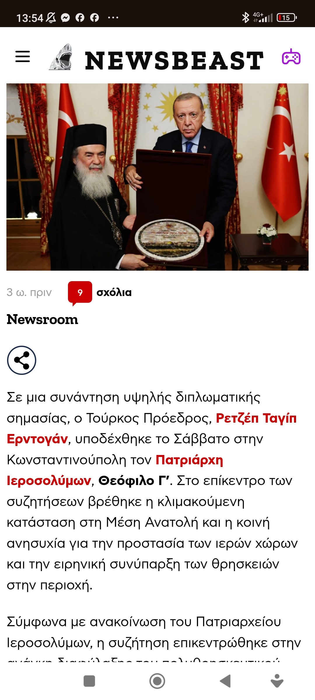 "Πίστη το ένα το σκαλί..." Eυρώπη / ΔιεθνήΥψηλή διπλωματία ή κατάντια… Πέτρος Ιωάννου7 μήνες ago7 μήνες ago01 mins Μετά τη Μεσόγειο, ρυθμιστής ο Ερντογάν και στα παπαδίστικα; Είδαμε τον σεβασμό των ισλαμιστών: στις αρχαιότητες και στα εκκλ. μνημεία 14/9/2025 https://www.newsbeast.gr/world/arthro/12568585/konstantinoupoli-o-patriarchis-ierosolymon-syzitise-me-ton-erntogan-gia-tin-tychi-ton-agion-topon Πλοήγηση άρθρων Previous: …πέστα Σαπφώ, πέσταNext: Ενός ανδρός αρχή Αφήστε μια απάντηση Ακύρωση απάντησηςΗ ηλ. διεύθυνση σας δεν δημοσιεύεται. Τα υποχρεωτικά πεδία σημειώνονται με *Σχόλιο * Όνομα * Email * Ιστότοπος Αποθήκευσε το όνομά μου, email, και τον ιστότοπο μου σε αυτόν τον πλοηγό για την επόμενη φορά που θα σχολιάσω.