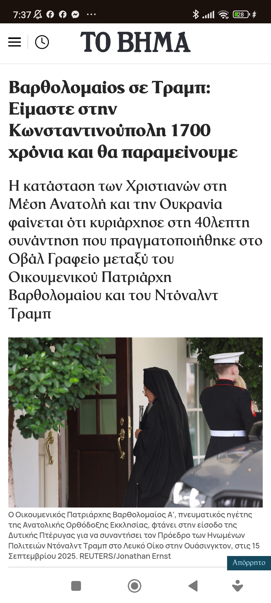 "Πίστη το ένα το σκαλί..."Ήθελαν να μας διώξουν μετά τη μικρασιατική καταστροφή, περάσαμε δύσκολα. Κι όμως μείναμε Πέτρος Ιωάννου7 μήνες ago7 μήνες ago01 mins Βαρθολομαίος σε Τραμπ: Είμαστε στην Κωνσταντινούπολη 1700 χρόνια και θα παραμείνουμε Πλοήγηση άρθρων Previous: Αυτό είναι το χωριό της λάρισας που έχει λύσει το δημογραφικό πρόβλημαNext: Η πρόβλεψη Αρκά δεν απέχει δυστυχώς, απ’ την αλήθεια Αφήστε μια απάντηση Ακύρωση απάντησηςΗ ηλ. διεύθυνση σας δεν δημοσιεύεται. Τα υποχρεωτικά πεδία σημειώνονται με *Σχόλιο * Όνομα * Email * Ιστότοπος Αποθήκευσε το όνομά μου, email, και τον ιστότοπο μου σε αυτόν τον πλοηγό για την επόμενη φορά που θα σχολιάσω.