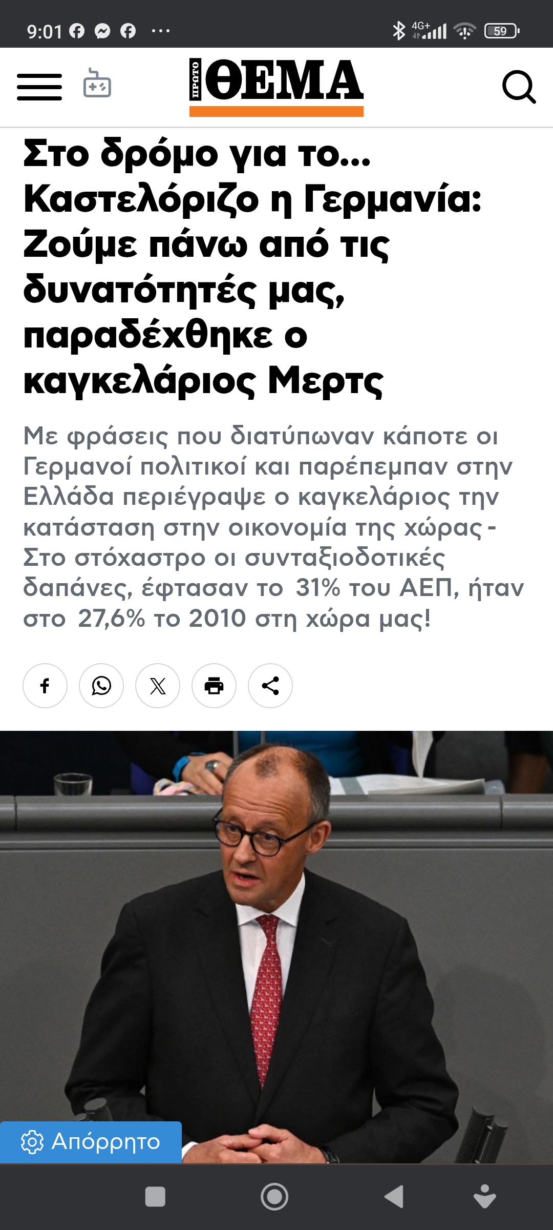 Eυρώπη / Διεθνή Οικονομία…καμπάνες ηχούν και στη Γερμανία στα δημοσιονομικά Πέτρος Ιωάννου7 μήνες ago7 μήνες ago01 mins https://www.protothema.gr/world/article/1697904/i-germaniki-kuvernisi-moirazei-hrimata-pou-den-ehei Πλοήγηση άρθρων Previous: Μιά καλημέρα από τον ΚΥΡNext: Η καλημέρα του Αρκά Αφήστε μια απάντηση Ακύρωση απάντησηςΗ ηλ. διεύθυνση σας δεν δημοσιεύεται. Τα υποχρεωτικά πεδία σημειώνονται με *Σχόλιο * Όνομα * Email * Ιστότοπος Αποθήκευσε το όνομά μου, email, και τον ιστότοπο μου σε αυτόν τον πλοηγό για την επόμενη φορά που θα σχολιάσω.