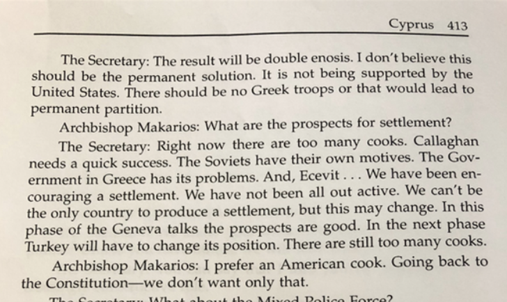 Εδώ : – «Κίσινγκερ: Υπάρχουν πολλοί μάγειροι – Μακάριος: Εγώ προτιμώ Αμερικάνο μάγειρα» Μέρος Γ’ Σημερινή 4 Αυγούστου 2023