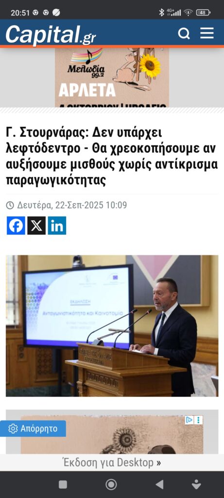 ...ξανά στα θρανία, στη μεγάλη των γελοιογράφων σχολήΣτουρνάρας: Αυξήσεις χωρίς παραγωγή ίσον χρεοκοπία. Θ’ αποπληρώσουμε νωρίτερα τα χρέη, προς σμίκρυνση του χρέους. Πέτρος Ιωάννου7 μήνες ago7 μήνες ago01 mins Κάτι όμως πρέπει να κάνουμε και με το…το μπαλόνι 22/9/2025 Πλοήγηση άρθρων Previous: Περίτεχνη η πολιτική. Τους “εκλέγεις”, τους πληρώνεις κι όταν σε χρεοκοπούν, σε χρεώνουν και τις κλεψιές.Next: Μήπως, φταίμε όλοι; Αφήστε μια απάντηση Ακύρωση απάντησηςΗ ηλ. διεύθυνση σας δεν δημοσιεύεται. Τα υποχρεωτικά πεδία σημειώνονται με *Σχόλιο * Όνομα * Email * Ιστότοπος Αποθήκευσε το όνομά μου, email, και τον ιστότοπο μου σε αυτόν τον πλοηγό για την επόμενη φορά που θα σχολιάσω.