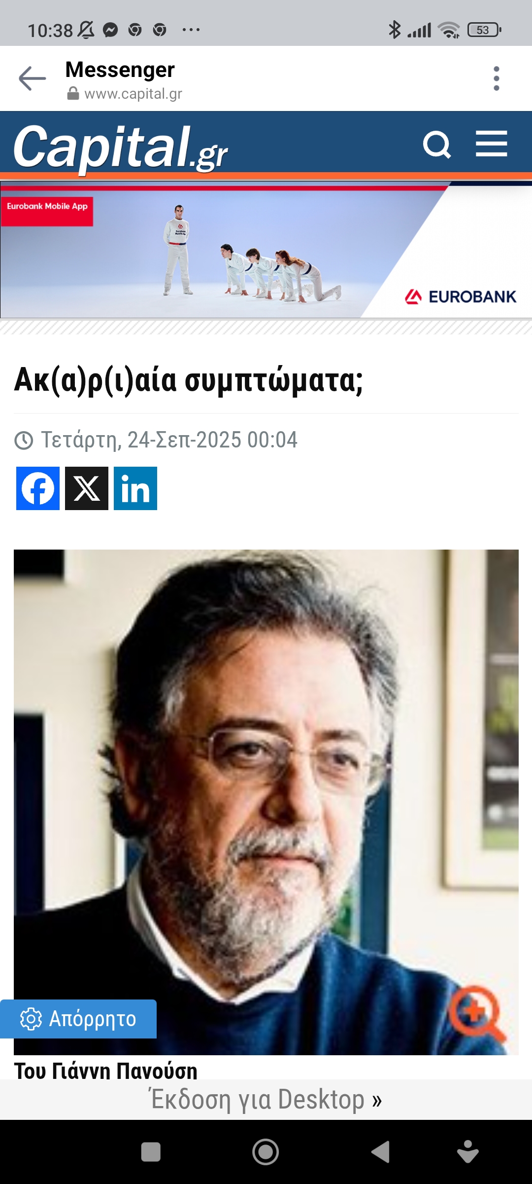 Απόψεις Κοινωνία / ΠολιτικήΑκ(α)ρ(ι)αία συμπτώματα Πέτρος Ιωάννου7 μήνες ago7 μήνες ago01 mins 24/9/2025 https://www.capital.gr/me-apopsi/3945836/akariaia-sumptomata Πλοήγηση άρθρων Previous: Η λύση δύο κρατών δεν πρόκειται να ξαναζωντανέψειNext: Έφυγε η Claudia Cardinale Αφήστε μια απάντηση Ακύρωση απάντησηςΗ ηλ. διεύθυνση σας δεν δημοσιεύεται. Τα υποχρεωτικά πεδία σημειώνονται με *Σχόλιο * Όνομα * Email * Ιστότοπος Αποθήκευσε το όνομά μου, email, και τον ιστότοπο μου σε αυτόν τον πλοηγό για την επόμενη φορά που θα σχολιάσω.