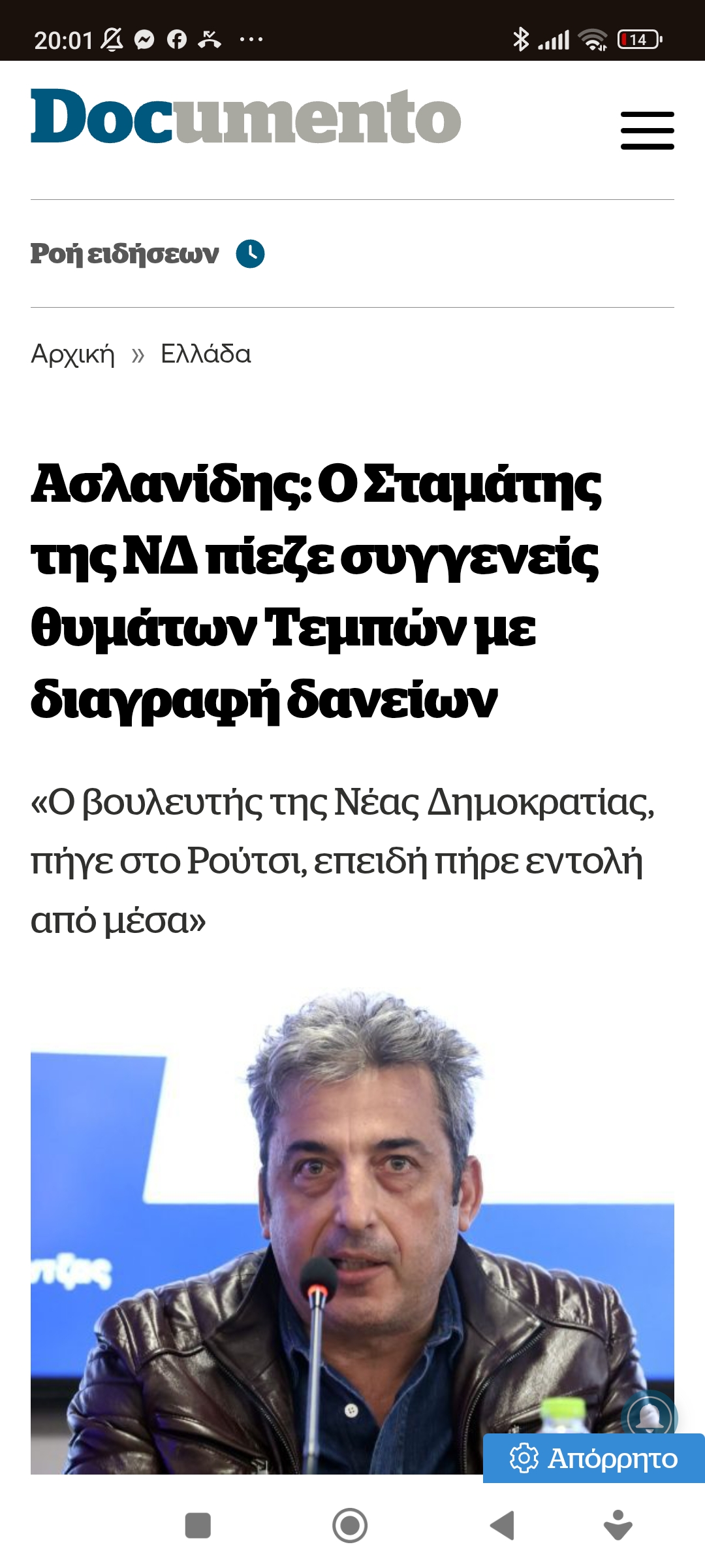 Έγκλημα και τιμωρίαΕλλάς Ελλήνων τυχοδιωκτών… Πέτρος Ιωάννου7 μήνες ago7 μήνες ago01 mins …αντί για ανεξάρτητη δικαιοσύνη, πλευρίζουν με ρουσφέτια συγγενείς θυμάτων. Περίφημα !!! Ασλανίδης: Διαγράψανε δάνεια σε πολλούς https://www.documentonews.gr/article/aslanidis-o-stamatis-tis-nd-pieze-syngeneis-thymaton-tebon-me-diagrafi-daneion Πλοήγηση άρθρων Previous: Μια καλημέρα απ’ τον ΚΥΡNext: Στη φυλακή για 5 χρόνια ο Σαρκοζί Αφήστε μια απάντηση Ακύρωση απάντησηςΗ ηλ. διεύθυνση σας δεν δημοσιεύεται. Τα υποχρεωτικά πεδία σημειώνονται με *Σχόλιο * Όνομα * Email * Ιστότοπος Αποθήκευσε το όνομά μου, email, και τον ιστότοπο μου σε αυτόν τον πλοηγό για την επόμενη φορά που θα σχολιάσω.