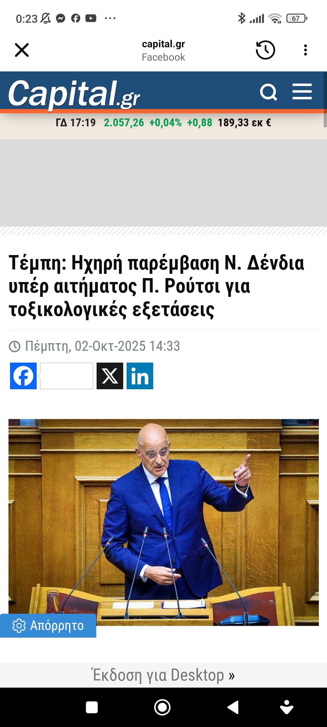 Έγκλημα και τιμωρία Κοινωνία / ΠολιτικήΥπέρ του Πάνου Ρούτσι ο Ν. Δένδιας στη Βουλή Πέτρος Ιωάννου7 μήνες ago7 μήνες ago01 mins https://www.capital.gr/politiki/3948221/ixiri-parembasi-n-dendia-uper-aitimatos-p-routsi-gia-toxikologikes-exetaseis/?fbclid=IwdGRjcANLzLxjbGNrA0vMq2V4dG4DYWVtAjExAAEeDLn01NVt2tKls4Bpy5CCKW8FiUIZ47Iw_9FIrq_6HG3IGc4j9WH53gBnpsw_aem_X8C4g79gWKJiYXA8Tlu4EQ Πλοήγηση άρθρων Previous: Οι κανονισμοί της Βουλής γίνονται λάστιχο για το κυβερνών κόμμαNext: επαγγελματίες ψεύτες και κορόιδα Αφήστε μια απάντηση Ακύρωση απάντησηςΗ ηλ. διεύθυνση σας δεν δημοσιεύεται. Τα υποχρεωτικά πεδία σημειώνονται με *Σχόλιο * Όνομα * Email * Ιστότοπος Αποθήκευσε το όνομά μου, email, και τον ιστότοπο μου σε αυτόν τον πλοηγό για την επόμενη φορά που θα σχολιάσω.