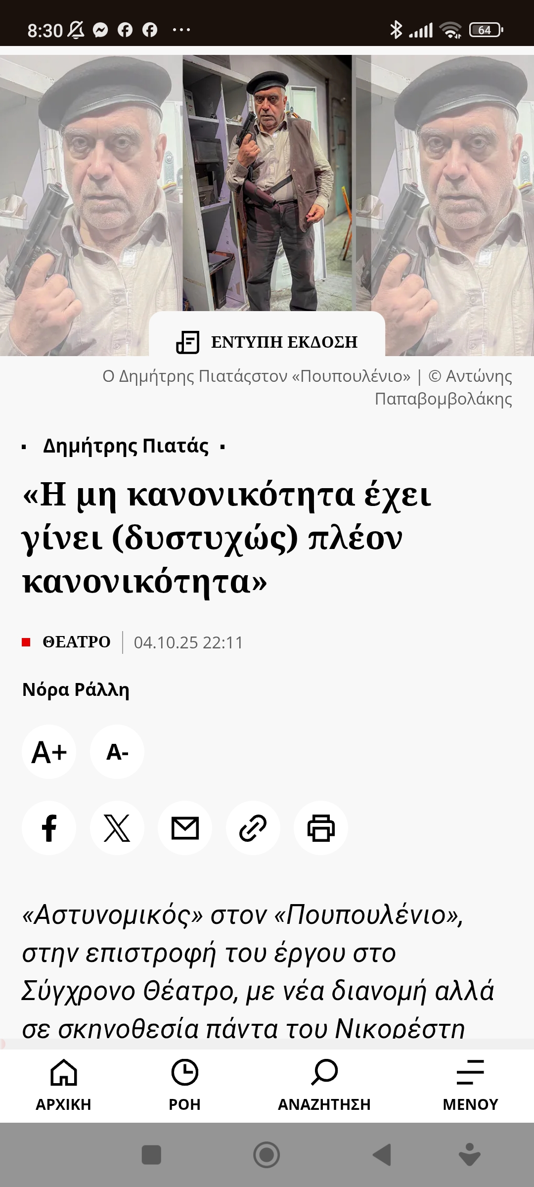 Εκπαίδευση / ΠολιτισμόςΠιατάς: “Δυστυχώς η μη κανονικότητα έχει γίνει πλέον κανονικότητα” Πέτρος Ιωάννου6 μήνες ago6 μήνες ago01 mins https://www.efsyn.gr/tehnes/theatro/486672_i-mi-kanonikotita-ehei-ginei-dystyhos-pleon-kanonikotita#goog_rewarded Πλοήγηση άρθρων Previous: εεε πόσο χειρότερα μπορούν να πάνε τα πράγματα… Κακό πράγμα ο εθισμόςNext: Απορώ…Τόσο υποταγμένοι οι δικαστές στην πολιτική εξουσία; Αφήστε μια απάντηση Ακύρωση απάντησηςΗ ηλ. διεύθυνση σας δεν δημοσιεύεται. Τα υποχρεωτικά πεδία σημειώνονται με *Σχόλιο * Όνομα * Email * Ιστότοπος Αποθήκευσε το όνομά μου, email, και τον ιστότοπο μου σε αυτόν τον πλοηγό για την επόμενη φορά που θα σχολιάσω.