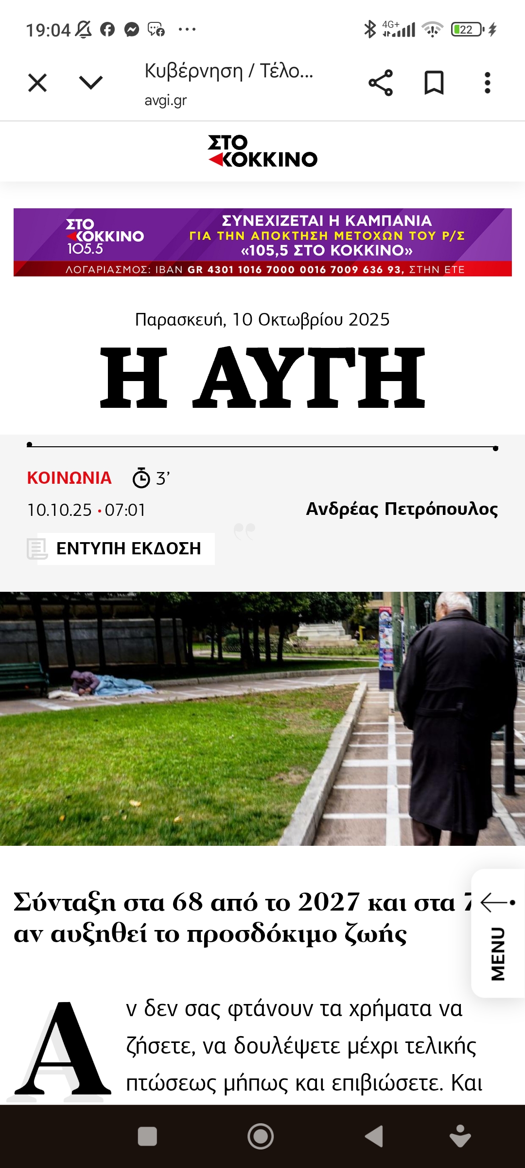 Κοινωνία / Πολιτική ΟικονομίαΕπιλέγουν άνα 4ετία “σοβαρούς”. Οι σοβαροί παίρνουν “σοβαρά” μέτρα και ιδού τ’ αποτελέσματα… Πέτρος Ιωάννου6 μήνες ago6 μήνες ago01 mins 10/10/2025 https://www.avgi.gr/koinonia/512612_telos-i-syntaxi-sta-62-kai-sta-67 Πλοήγηση άρθρων Previous: Όταν θέλουμε υπάρχουν τρόποι και τρόποι νάμαστε θετικοί στον διπλανό μαςNext: Σε ελλιποβαρείς κυβερνήσεις όλων των αποχρώσεων, είναι περιττός ο χαρακτηρισμός του χειρότερου Αφήστε μια απάντηση Ακύρωση απάντησηςΗ ηλ. διεύθυνση σας δεν δημοσιεύεται. Τα υποχρεωτικά πεδία σημειώνονται με *Σχόλιο * Όνομα * Email * Ιστότοπος Αποθήκευσε το όνομά μου, email, και τον ιστότοπο μου σε αυτόν τον πλοηγό για την επόμενη φορά που θα σχολιάσω.