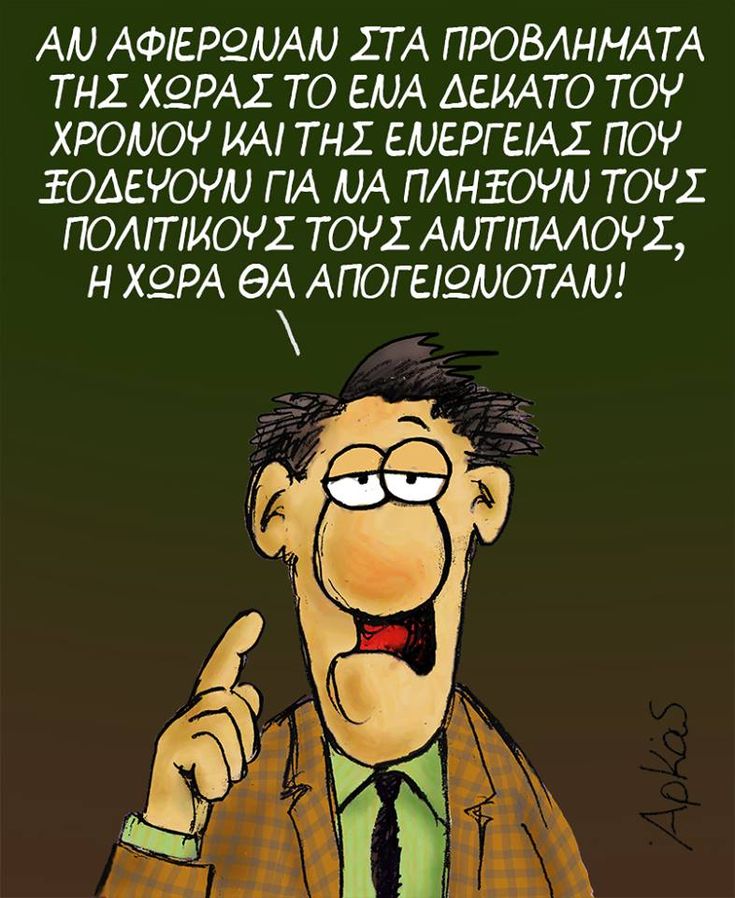 ...ξανά στα θρανία, στη μεγάλη των γελοιογράφων σχολήΣτις πολιτικές κονταρομαχίες αναφέρεται ο Αρκάς Εγώ θα επεκτεθώ λίγο. Οι καφετέριες είναι γεμάτες μα και τα έργοτάξια Πέτρος Ιωάννου6 μήνες ago6 μήνες ago01 mins με τόσο ιδρώτα, στοχοθεσία και τα γκέμια στα χέρια μας, η χώρα σαφώς και θα απογειωνόταν 14/10/2025 Πλοήγηση άρθρων Previous: Ούτε σχολή να τέλειωναν… Τόση μαλαγανιά κι εκατομμύρια να τσιμπάνε, ανεξήγητοNext: Μία ιδέα τον Άγγλων να περάσει η Κύπρος στην Ελλάδα ναυάγησε εν τη γενέσει της Αφήστε μια απάντηση Ακύρωση απάντησηςΗ ηλ. διεύθυνση σας δεν δημοσιεύεται. Τα υποχρεωτικά πεδία σημειώνονται με *Σχόλιο * Όνομα * Email * Ιστότοπος Αποθήκευσε το όνομά μου, email, και τον ιστότοπο μου σε αυτόν τον πλοηγό για την επόμενη φορά που θα σχολιάσω.