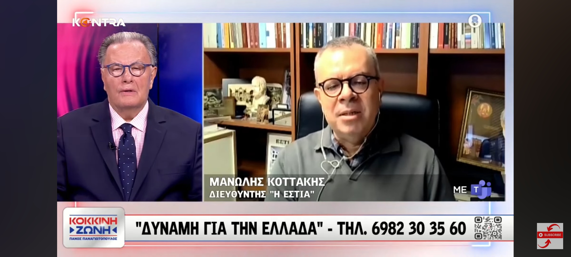 Άμυνα / Στρατηγική Κοινωνία / ΠολιτικήΜανώλης Κοττάκης: Μηχανεύονται φερετζέδες για να καλύψουν τις υποχωρήσεις Πέτρος Ιωάννου6 μήνες ago6 μήνες ago01 mins Πηγή:Kontra Channel Πλοήγηση άρθρων Previous: Αμπελάκια, το χωριό στον Κίσσαβο που ο χρόνος έχει σταματήσειNext: Χρήστος Μόσχος: Σφαγιάζονται ζώα αντί εμβολίων λόγω πλασματικών λαθραίων αναφορών αιγοπροβάτων και επαπειλούμενων νέων προστίμων απ’ την Ε.Ε. Αφήστε μια απάντηση Ακύρωση απάντησηςΗ ηλ. διεύθυνση σας δεν δημοσιεύεται. Τα υποχρεωτικά πεδία σημειώνονται με *Σχόλιο * Όνομα * Email * Ιστότοπος Αποθήκευσε το όνομά μου, email, και τον ιστότοπο μου σε αυτόν τον πλοηγό για την επόμενη φορά που θα σχολιάσω.