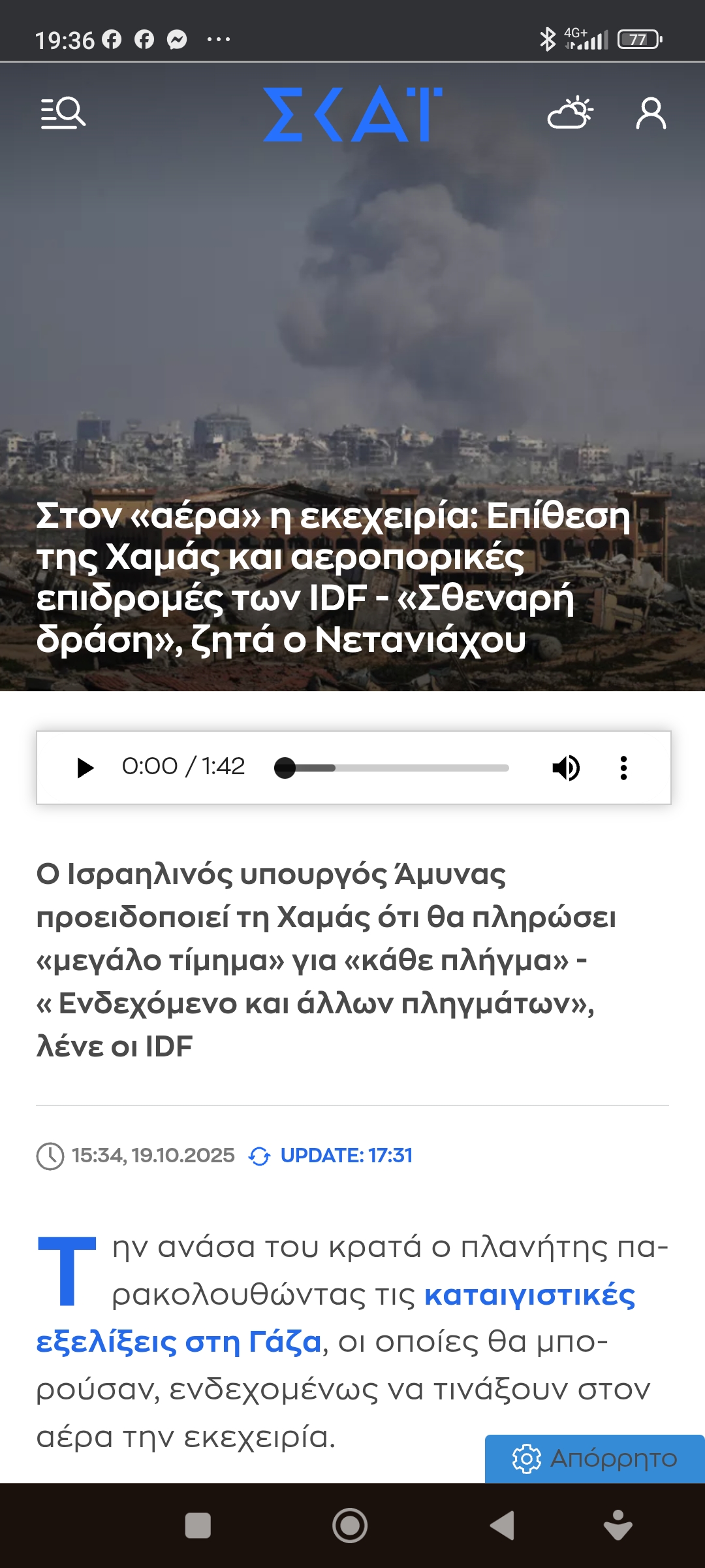 Eυρώπη / Διεθνή…στον αέρα η εκεχειρία Πέτρος Ιωάννου6 μήνες ago6 μήνες ago01 mins 19/10/2025 https://www.skai.gr/news/world/gaza-ston-aera-i-ekexeiria-epithesi-tis-xamas-kai-aeroporikes-epidromes-ton-idf Πλοήγηση άρθρων Previous: Σκίτσο του Στάθη για το Δρόμο της αριστεράςNext: Το σκίτσο του Στάθη για το Militaire News Αφήστε μια απάντηση Ακύρωση απάντησηςΗ ηλ. διεύθυνση σας δεν δημοσιεύεται. Τα υποχρεωτικά πεδία σημειώνονται με *Σχόλιο * Όνομα * Email * Ιστότοπος Αποθήκευσε το όνομά μου, email, και τον ιστότοπο μου σε αυτόν τον πλοηγό για την επόμενη φορά που θα σχολιάσω.