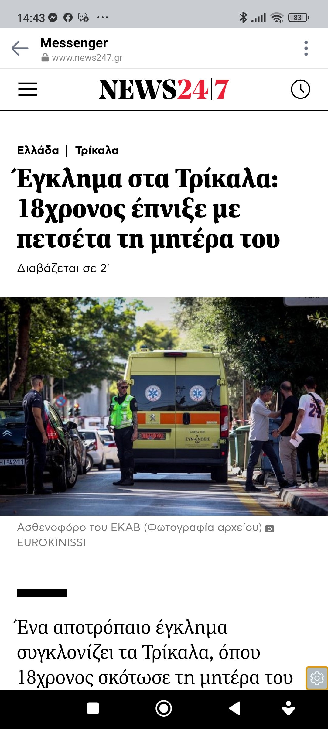 Έγκλημα και τιμωρίαΕπικαλέσθηκε bullying εις βάρος του από συνομηλίκους Πέτρος Ιωάννου6 μήνες ago6 μήνες ago01 mins είναι δυνατόν να παρενοχλείται για τη γονεακή κατάσταση… 21/10/2025 Έγκλημα στα Τρίκαλα: 18χρονος έπνιξε με πετσέτα τη μητέρα του Πλοήγηση άρθρων Previous: Αγώνας δρόμου να μάθουμε να μιλάμε τη μητρική μας γλώσσα κι άλλες και μετά σιωπή… εφ’ όρου ζωήςNext: Η ναυμαχία του Ναυαρίνου Αφήστε μια απάντηση Ακύρωση απάντησηςΗ ηλ. διεύθυνση σας δεν δημοσιεύεται. Τα υποχρεωτικά πεδία σημειώνονται με *Σχόλιο * Όνομα * Email * Ιστότοπος Αποθήκευσε το όνομά μου, email, και τον ιστότοπο μου σε αυτόν τον πλοηγό για την επόμενη φορά που θα σχολιάσω.