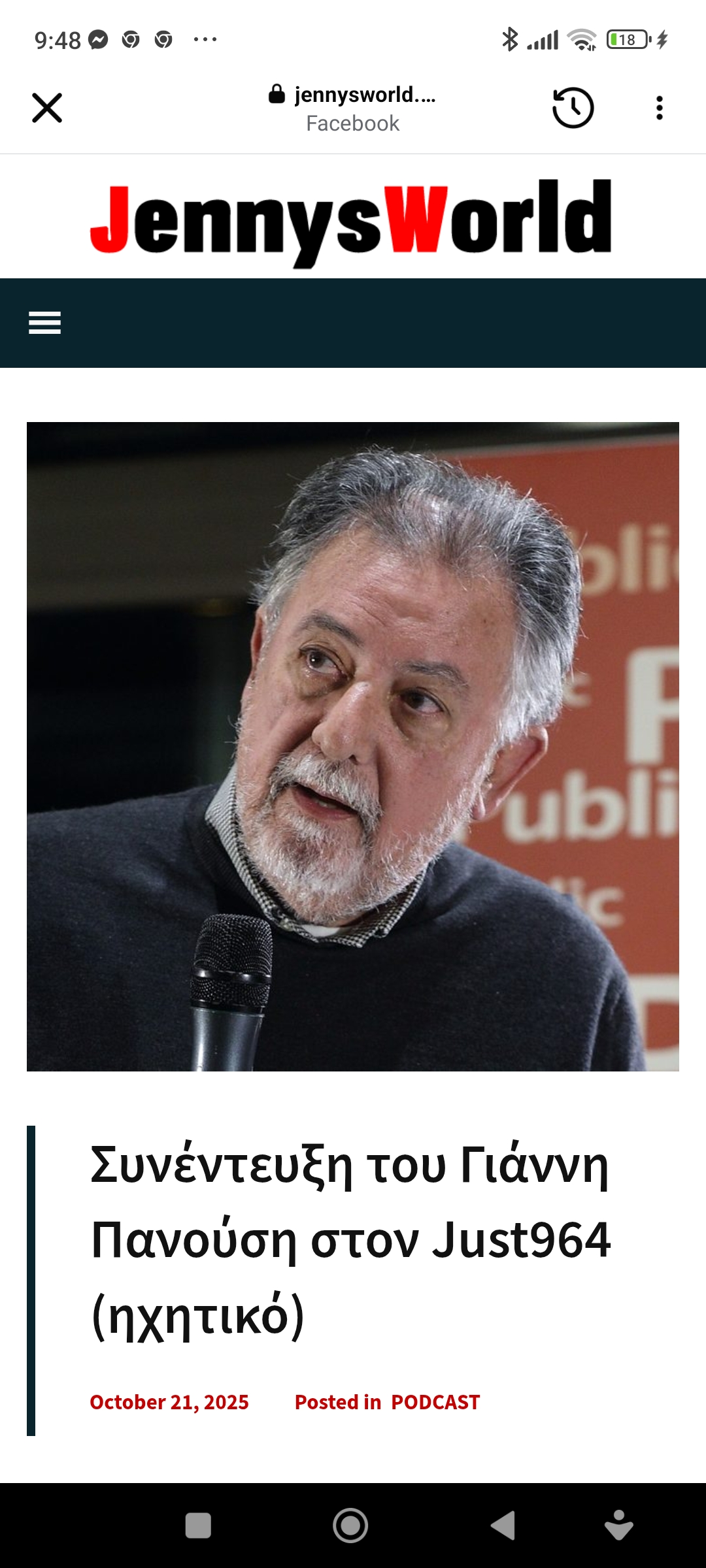 Απόψεις Βίντεο Έγκλημα και τιμωρία Κοινωνία / ΠολιτικήΗ συνέντευξη του Γιάννη Πανούση στον just 964 (ηχητικό) Πέτρος Ιωάννου6 μήνες ago6 μήνες ago01 mins Συνέντευξη του Γιάννη Πανούση στον Just964 (ηχητικό) Πλοήγηση άρθρων Previous: Τω αγνώστω δημοκράτηNext: Όπως ο Μίκης έτσι κι ο Νιόνιος δέχθηκε κριτική για τα “πολιτικά” του. Αυτό που μετράει όμως είναι τα υπέροχα τραγούδια του Αφήστε μια απάντηση Ακύρωση απάντησηςΗ ηλ. διεύθυνση σας δεν δημοσιεύεται. Τα υποχρεωτικά πεδία σημειώνονται με *Σχόλιο * Όνομα * Email * Ιστότοπος Αποθήκευσε το όνομά μου, email, και τον ιστότοπο μου σε αυτόν τον πλοηγό για την επόμενη φορά που θα σχολιάσω.