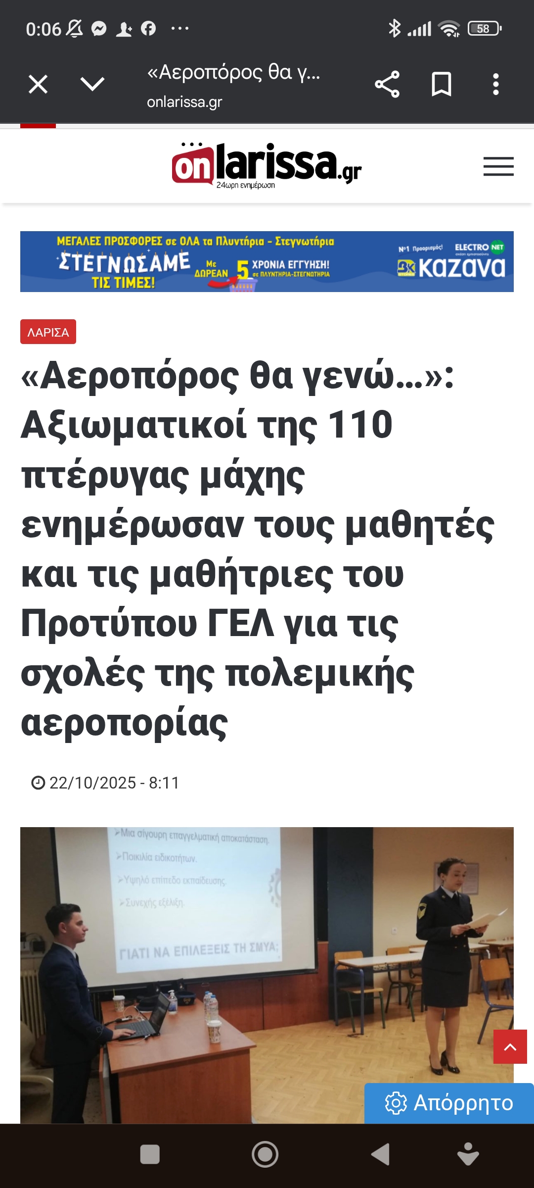 Άμυνα / Στρατηγική Εκπαίδευση / Πολιτισμός“Αεροπόρος θα γενώ…” Πέτρος Ιωάννου6 μήνες ago6 μήνες ago01 mins https://www.onlarissa.gr/2025/10/22/aeroporos-tha-geno-axiomatikoi-tis-110-pterygas-machis-enimerosan-tous-mathites-kai-tis-mathitries-tou-protypou-gel-gia-tis-scholes-tis-polemikis-aeroporias Πλοήγηση άρθρων Previous: Σκίτσο του Χρήστου Παπανίκου για το Ελλάδα 24Next: Οι γυναίκες των 40 και 50. Μόνο ζωντανές παρούσες ελεύθερες Αφήστε μια απάντηση Ακύρωση απάντησηςΗ ηλ. διεύθυνση σας δεν δημοσιεύεται. Τα υποχρεωτικά πεδία σημειώνονται με *Σχόλιο * Όνομα * Email * Ιστότοπος Αποθήκευσε το όνομά μου, email, και τον ιστότοπο μου σε αυτόν τον πλοηγό για την επόμενη φορά που θα σχολιάσω.