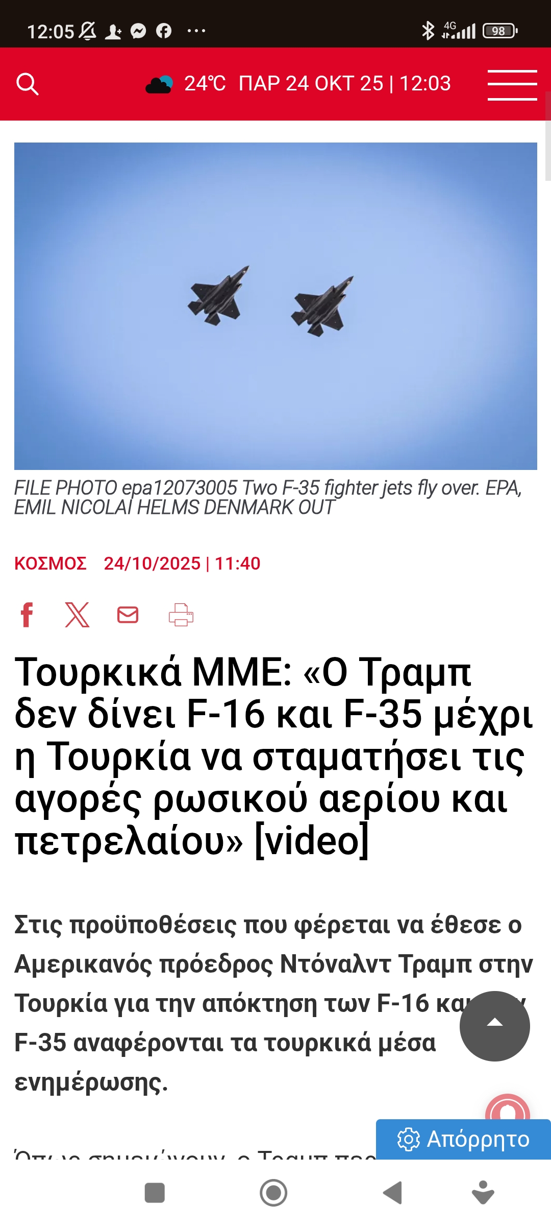 Eυρώπη / ΔιεθνήΣτο περίμενε πάλι η Τουρκία, λόγω ρωσικών καυσίμων και S400 Πέτρος Ιωάννου6 μήνες ago6 μήνες ago01 mins video/https://hellasjournal.com/2025/10/tourkika-mme-o-trab-den-dinei-f-16-kai-f-35-mechri-i-tourkia-na-stamatisei-tis-agores-rosikou-aeriou-kai-petrelaiou-video Πλοήγηση άρθρων Previous: Άνισα εισοδήματα άνιση ζωήNext: Σκίτσο του Αντώνη Βαβαγιάννη για το NEWS24/7 Αφήστε μια απάντηση Ακύρωση απάντησηςΗ ηλ. διεύθυνση σας δεν δημοσιεύεται. Τα υποχρεωτικά πεδία σημειώνονται με *Σχόλιο * Όνομα * Email * Ιστότοπος Αποθήκευσε το όνομά μου, email, και τον ιστότοπο μου σε αυτόν τον πλοηγό για την επόμενη φορά που θα σχολιάσω.