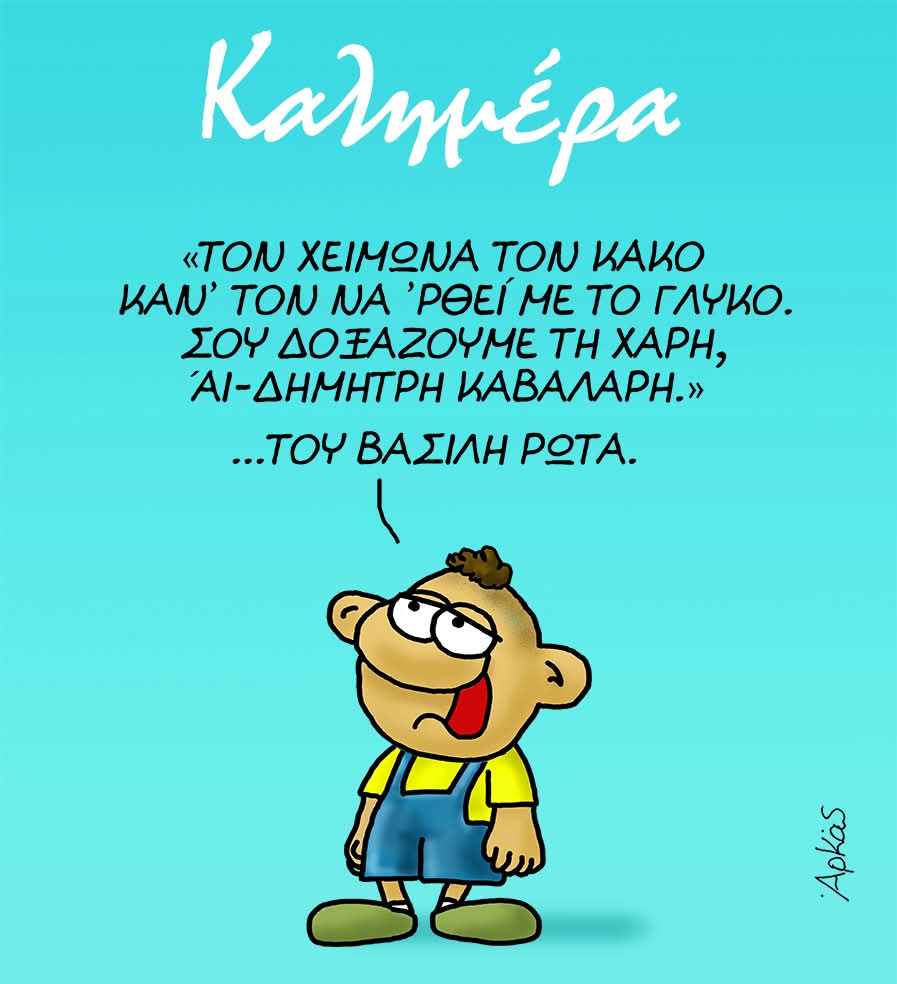 ...ξανά στα θρανία, στη μεγάλη των γελοιογράφων σχολήΗ καλημέρα του Αρκά Πέτρος Ιωάννου6 μήνες ago6 μήνες ago01 mins 26/10/2025 Πλοήγηση άρθρων Previous: Ιωάννης Καποδίστριας, ο άγιος της πολιτικήςNext: Έρχεται και η 28η… Αφήστε μια απάντηση Ακύρωση απάντησηςΗ ηλ. διεύθυνση σας δεν δημοσιεύεται. Τα υποχρεωτικά πεδία σημειώνονται με *Σχόλιο * Όνομα * Email * Ιστότοπος Αποθήκευσε το όνομά μου, email, και τον ιστότοπο μου σε αυτόν τον πλοηγό για την επόμενη φορά που θα σχολιάσω.