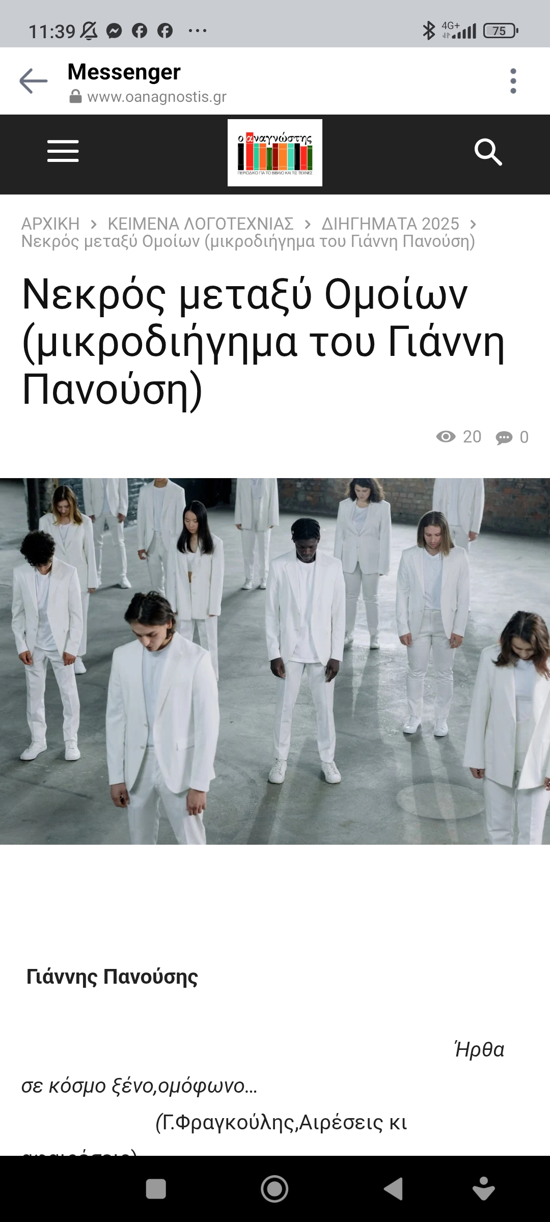 Εκπαίδευση / Πολιτισμός“Νεκρός μεταξύ Ομοίων” του Γιάννη Πανούση Πέτρος Ιωάννου6 μήνες ago6 μήνες ago01 mins 28/10/2025 Νεκρός μεταξύ Ομοίων (μικροδιήγημα του Γιάννη Πανούση) Πλοήγηση άρθρων Previous: Καρυστιανού: Το ΟΧΙ διδάσκει, ένα “νέο οχι”, στους καταχρώμενους την εξουσίαNext: Γιατί διχάζει ο Καποδίστριας; Αφήστε μια απάντηση Ακύρωση απάντησηςΗ ηλ. διεύθυνση σας δεν δημοσιεύεται. Τα υποχρεωτικά πεδία σημειώνονται με *Σχόλιο * Όνομα * Email * Ιστότοπος Αποθήκευσε το όνομά μου, email, και τον ιστότοπο μου σε αυτόν τον πλοηγό για την επόμενη φορά που θα σχολιάσω.
