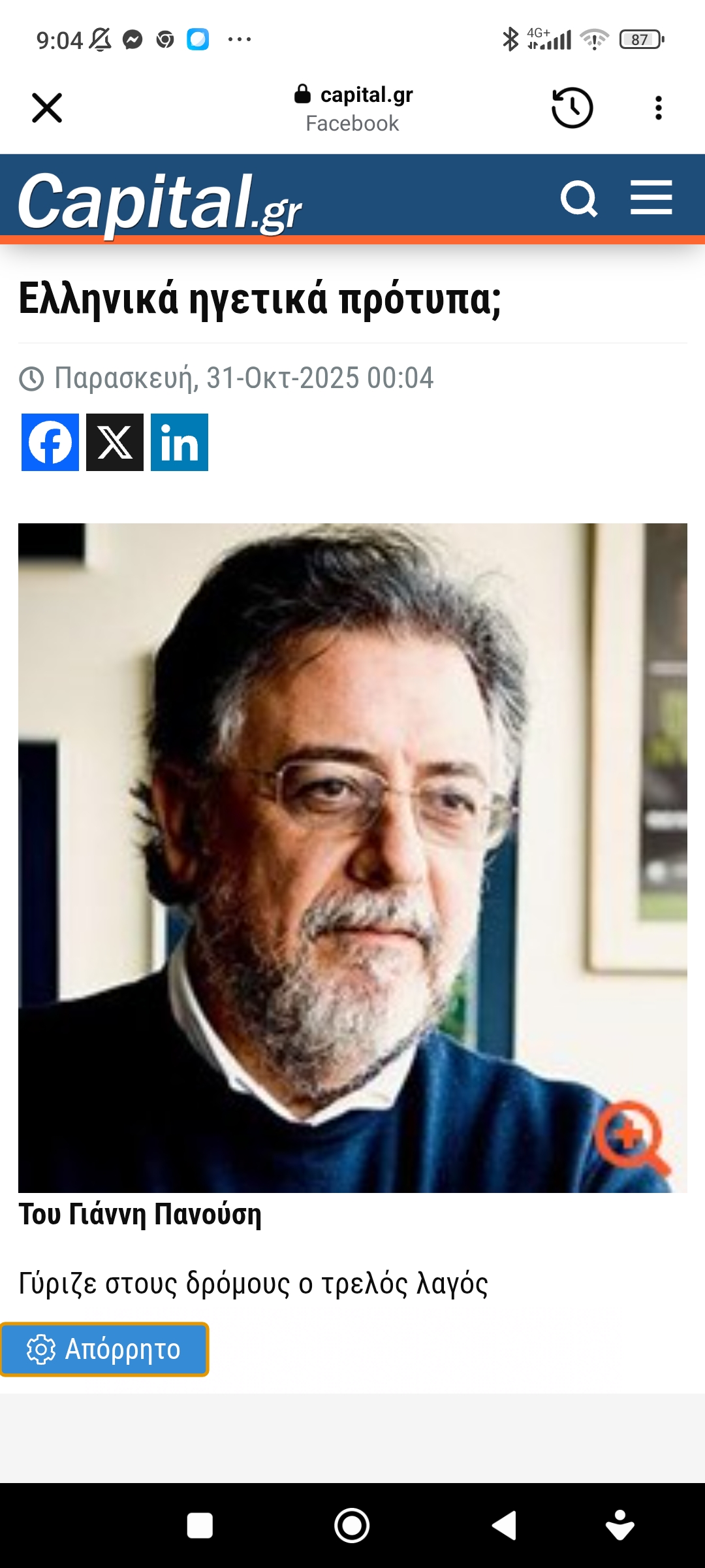 Απόψεις Κοινωνία / ΠολιτικήΕλληνικά ηγετικά πρότυπα; Πέτρος Ιωάννου6 μήνες ago6 μήνες ago01 mins https://www.capital.gr/me-apopsi/3953724/ellinika-igetika-protupa/?fbclid=IwdGRjcANxWoxjbGNrA3FahmV4dG4DYWVtAjExAAEec7IzSHIiKRIDesGPZA93nznjxFmaiZkk1UPCG72fSJBGjKB1PlNT3IGeSfI_aem_rbiwhZlog_xPFr-siPJOew Πλοήγηση άρθρων Previous: Τι πολιτικό κόσμο έχουμε…Next: Σε κρίση σύσσωμο το κομματικό σύστημα Αφήστε μια απάντηση Ακύρωση απάντησηςΗ ηλ. διεύθυνση σας δεν δημοσιεύεται. Τα υποχρεωτικά πεδία σημειώνονται με *Σχόλιο * Όνομα * Email * Ιστότοπος Αποθήκευσε το όνομά μου, email, και τον ιστότοπο μου σε αυτόν τον πλοηγό για την επόμενη φορά που θα σχολιάσω.