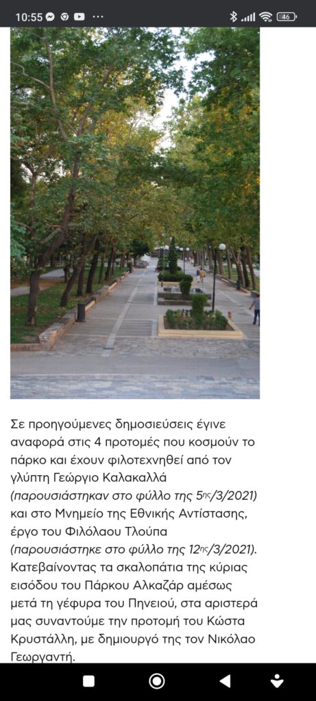 Θεσσαλία / ΛάρισαΚώστας Κρυστάλλης: “πάρε απάνου στα βουνά τι θα με φάει ο κάμπος…” Πέτρος Ιωάννου5 μήνες ago5 μήνες ago01 mins προτομή του ποιητή στο Αλκαζάρ της Λάρισας του γλύπτη Νικόλαου Γεωργαντή 16/5/2021 https://www.larissanet.gr/2021/05/16/o-glyptis-nikolaos-georgantis-kai-i-protomi-tou-kosta-krystalli-sto-alkazar Πλοήγηση άρθρων Previous: Ο ντουνιάς μας, είναι για μπάτσες, πολλές μπάτσες…Next: …η απάθεια και άλλα σημάδια δείχνουν πως αργοπεθαίνουμε Αφήστε μια απάντηση Ακύρωση απάντησηςΗ ηλ. διεύθυνση σας δεν δημοσιεύεται. Τα υποχρεωτικά πεδία σημειώνονται με *Σχόλιο * Όνομα * Email * Ιστότοπος Αποθήκευσε το όνομά μου, email, και τον ιστότοπο μου σε αυτόν τον πλοηγό για την επόμενη φορά που θα σχολιάσω.