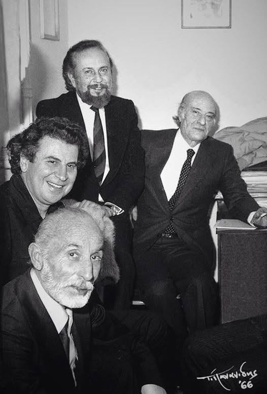 - Κάποτε στην Ελλάδα συνυπήρχαν και δημιουργούσαν: ο Σεφέρης, ο Ελύτης, ο Ρίτσος, ο Αναγνωστάκης, ο Βάρναλης, ο Σκαρίμπας, ο Σαχτούρης, ο Λειβαδίτης, ο Γκάτσος,ο Ταχτσής, ο Τσίρκας , η Σωτηρίου, ο Σαμαράκης, ο Βασιλικός, ο Καμπανέλλης, ο Πατρίκιος, ο Κεχαϊδης, ο Τσιφόρος, ο Μποστ, ο Ψαθάς,ο Σακελλάριος,ο Κουν, ο Σολωμός, ο Μινωτής, ο Ροντήρης, ο Κακογιάννης, ο Κούνδουρος, ο Τζαβέλλας,η Παξινού, η Μερκούρη, ο Κατράκης, η Βασιλειάδου, ο Αυλωνίτης, ο Βέγγος, ο Χορν, η Λαμπέτη, ο Τσαρούχης, ο Χατζηκυριάκος-Γκίκας, ο Μόραλης, ο Βασιλείου…ο Βαμβακάρης, ο Τσιτσάνης, ο Παπαϊωάννου, ο Χιώτης, η Νίνου, η Μπέλλου, ο Μπιθικώτσης, ο Καζαντζίδης, ο Θεοδωράκης, ο Χατζιδάκις, ο Ξαρχάκος, ο Λοϊζος, ο Λεοντής, ο Σαββόπουλος, ο Μαμαγκάκης, ο Χρήστου…Τότε, ήταν μια πολύ δύσκολη εποχή…