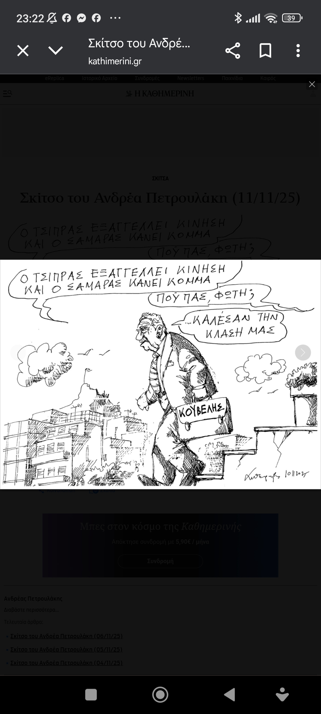 ...ξανά στα θρανία, στη μεγάλη των γελοιογράφων σχολήΣκίτσο του Ανδρέα Πετρουλάκη για την Καθημερινή Πέτρος Ιωάννου5 μήνες ago5 μήνες ago01 mins 11/11/2025 Πλοήγηση άρθρων Previous: Σκίτσο του Ηλία Μακρή για την ΚαθημερινήNext: Άσε με να κάνω λάθος… Αφήστε μια απάντηση Ακύρωση απάντησηςΗ ηλ. διεύθυνση σας δεν δημοσιεύεται. Τα υποχρεωτικά πεδία σημειώνονται με *Σχόλιο * Όνομα * Email * Ιστότοπος Αποθήκευσε το όνομά μου, email, και τον ιστότοπο μου σε αυτόν τον πλοηγό για την επόμενη φορά που θα σχολιάσω.