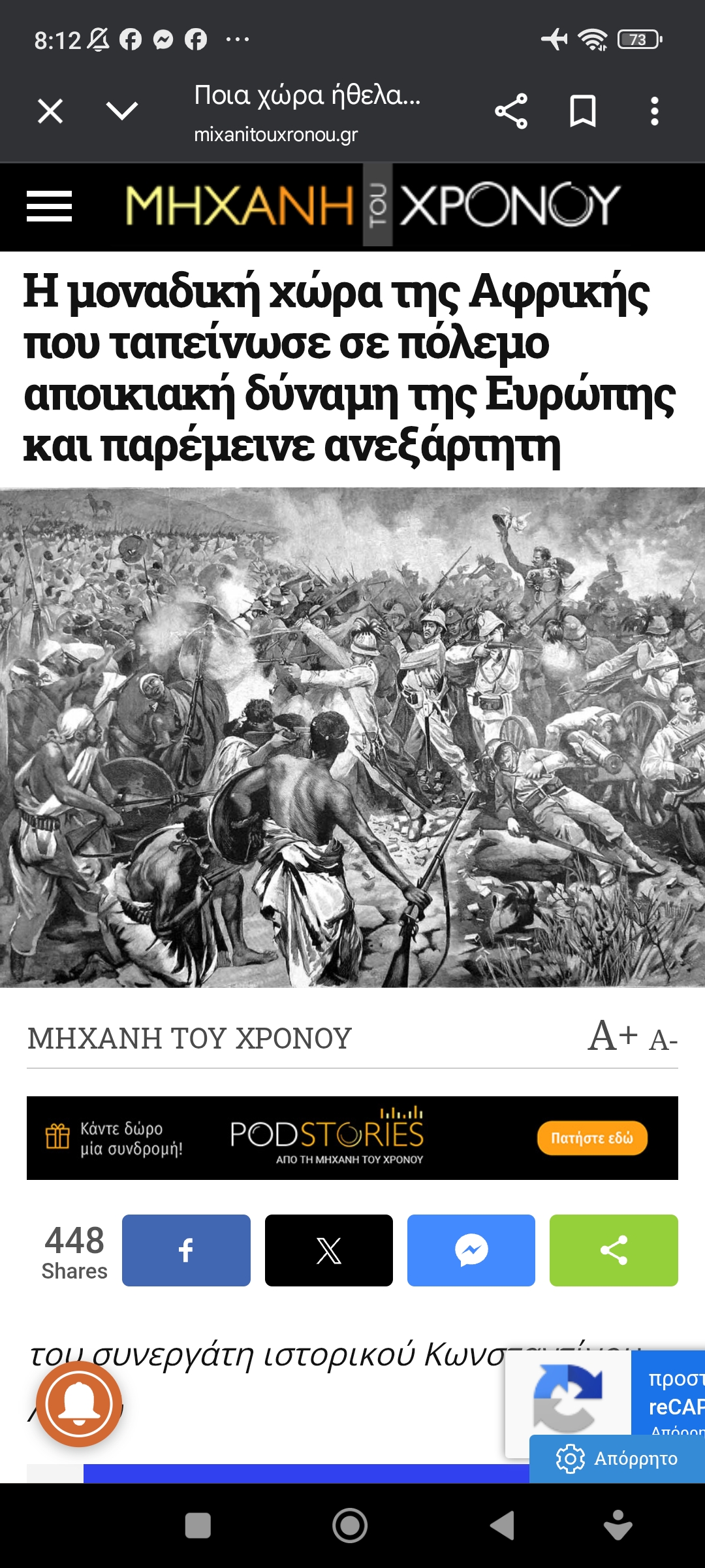 Eυρώπη / ΔιεθνήΑιθιοπία! Η μόνη χώρα που κατέστη αποικία, μόνο για 5 χρόνια Πέτρος Ιωάννου5 μήνες ago5 μήνες ago01 mins μαθητής του ηλικία μέρα τους 20/11/2025 Η μοναδική χώρα της Αφρικής που ταπείνωσε σε πόλεμο αποικιακή δύναμη της Ευρώπης και παρέμεινε ανεξάρτητη Πλοήγηση άρθρων Previous: Η μικρή Ελλάδα του ΧαρτούμNext: Ωωω πολύ καυστικός και πάλι ο Αρκάς Αφήστε μια απάντηση Ακύρωση απάντησηςΗ ηλ. διεύθυνση σας δεν δημοσιεύεται. Τα υποχρεωτικά πεδία σημειώνονται με *Σχόλιο * Όνομα * Email * Ιστότοπος Αποθήκευσε το όνομά μου, email, και τον ιστότοπο μου σε αυτόν τον πλοηγό για την επόμενη φορά που θα σχολιάσω.