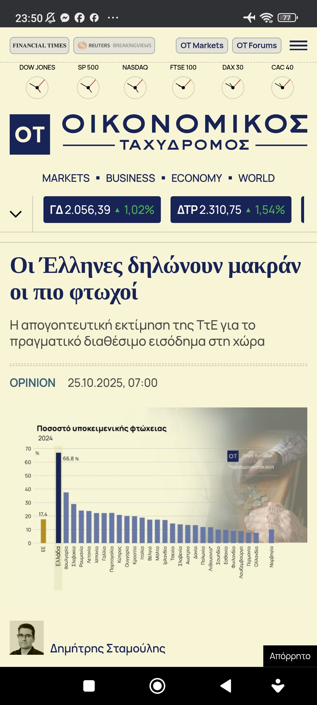 ΟικονομίαΦτωχοί δηλώνουν οι Έλληνες Πέτρος Ιωάννου5 μήνες ago5 μήνες ago01 mins Οι Έλληνες δηλώνουν μακράν οι πιο φτωχοί Πλοήγηση άρθρων Previous: Η γένεση Ολυμπιακών αθλημάτων. Θεματική στο Ολυμπιακό Μουσείο, Ντόχα Κατάρ (Στάδιο Καλίφα / βίντεο – φωτογραφίες)Next: Απειλές από Ζαχάροβα προς Ελλάδα για τη στάση της Αφήστε μια απάντηση Ακύρωση απάντησηςΗ ηλ. διεύθυνση σας δεν δημοσιεύεται. Τα υποχρεωτικά πεδία σημειώνονται με *Σχόλιο * Όνομα * Email * Ιστότοπος Αποθήκευσε το όνομά μου, email, και τον ιστότοπο μου σε αυτόν τον πλοηγό για την επόμενη φορά που θα σχολιάσω.