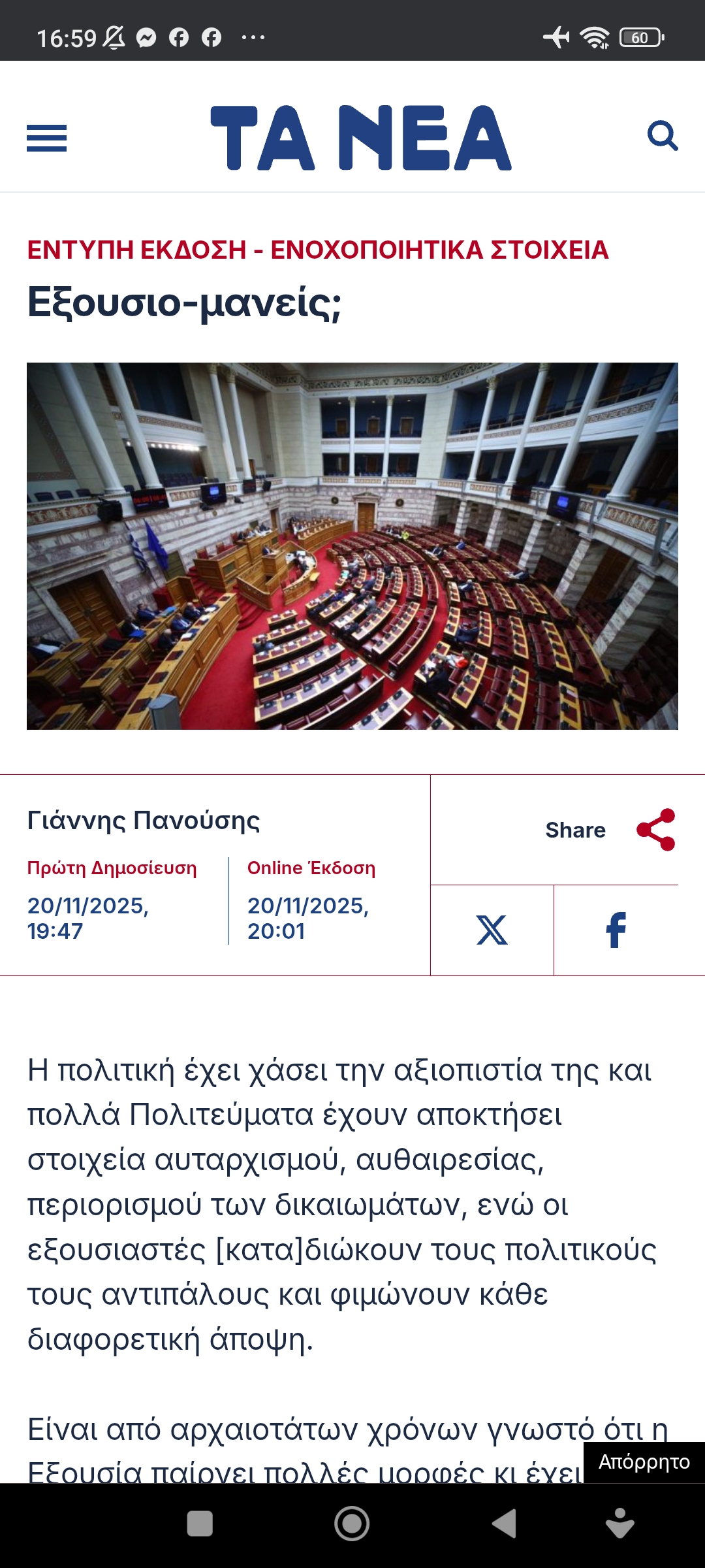 Απόψεις Κοινωνία / ΠολιτικήΕξουσιο-μανείς; Πέτρος Ιωάννου5 μήνες ago5 μήνες ago01 mins Εξουσιο-μανείς; Πλοήγηση άρθρων Previous: Μια καλημέρα από τον ΚΥΡNext: Ο χρυσός που φυγαδεύτηκε, επί Κατοχής γύρισε; Αφήστε μια απάντηση Ακύρωση απάντησηςΗ ηλ. διεύθυνση σας δεν δημοσιεύεται. Τα υποχρεωτικά πεδία σημειώνονται με *Σχόλιο * Όνομα * Email * Ιστότοπος Αποθήκευσε το όνομά μου, email, και τον ιστότοπο μου σε αυτόν τον πλοηγό για την επόμενη φορά που θα σχολιάσω.