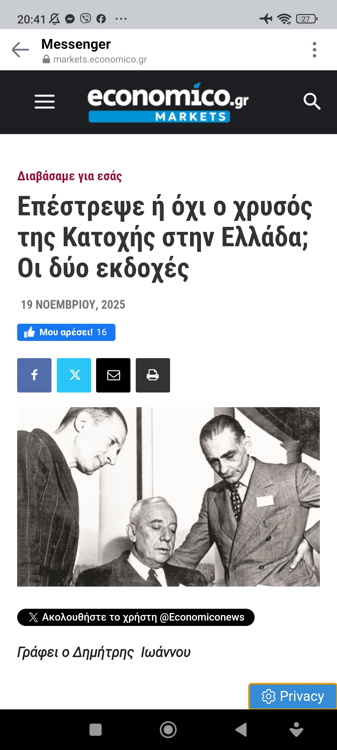 Ιστορία ΟικονομίαΟ χρυσός που φυγαδεύτηκε, επί Κατοχής γύρισε; Πέτρος Ιωάννου5 μήνες ago5 μήνες ago01 mins Επέστρεψε ή όχι ο χρυσός της Κατοχής στην Ελλάδα; Οι δύο εκδοχές Πλοήγηση άρθρων Previous: Εξουσιο-μανείς;Next: Υπέροχη βραδιά Αραβική στο Αλ Σαμρία (Ντόχα – Κατάρ). Συνοδεία Μουσικής, εδεσμάτων πλάι στη φωτιά τις πετρόκοτες και τις καμήλες Αφήστε μια απάντηση Ακύρωση απάντησηςΗ ηλ. διεύθυνση σας δεν δημοσιεύεται. Τα υποχρεωτικά πεδία σημειώνονται με *Σχόλιο * Όνομα * Email * Ιστότοπος Αποθήκευσε το όνομά μου, email, και τον ιστότοπο μου σε αυτόν τον πλοηγό για την επόμενη φορά που θα σχολιάσω.