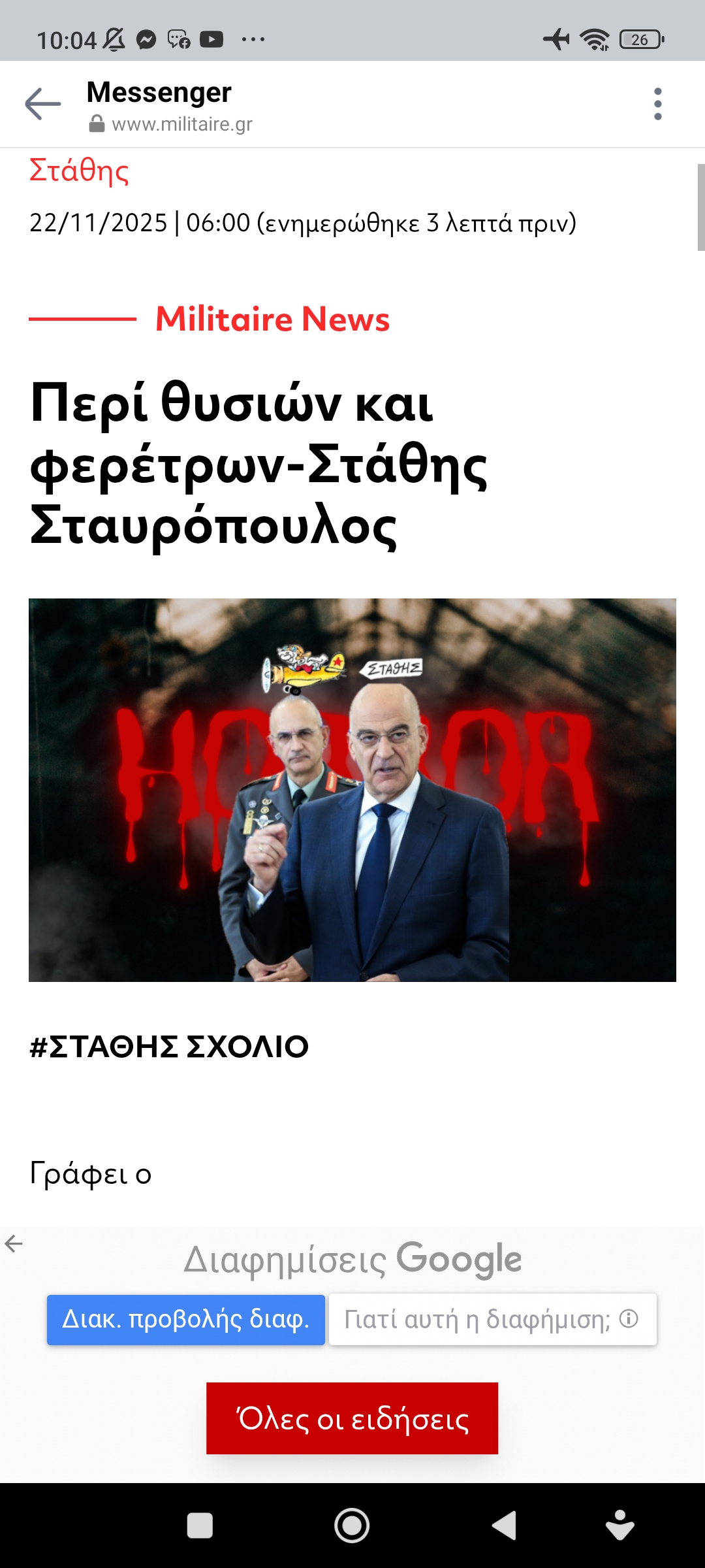 Άμυνα / Στρατηγική Πέτρος Ιωάννου5 μήνες ago5 μήνες ago01 mins 22/11/2025 https://www.militaire.gr/peri-thysion-kai-feretron-stathis-stayropoylos Πλοήγηση άρθρων Previous: “Complexity Theory”: Η νέα βάση της ΓεωπολιτικήςNext: Σκίτσο του Στάθη Σταυρόπουλου Αφήστε μια απάντηση Ακύρωση απάντησηςΗ ηλ. διεύθυνση σας δεν δημοσιεύεται. Τα υποχρεωτικά πεδία σημειώνονται με *Σχόλιο * Όνομα * Email * Ιστότοπος Αποθήκευσε το όνομά μου, email, και τον ιστότοπο μου σε αυτόν τον πλοηγό για την επόμενη φορά που θα σχολιάσω.
