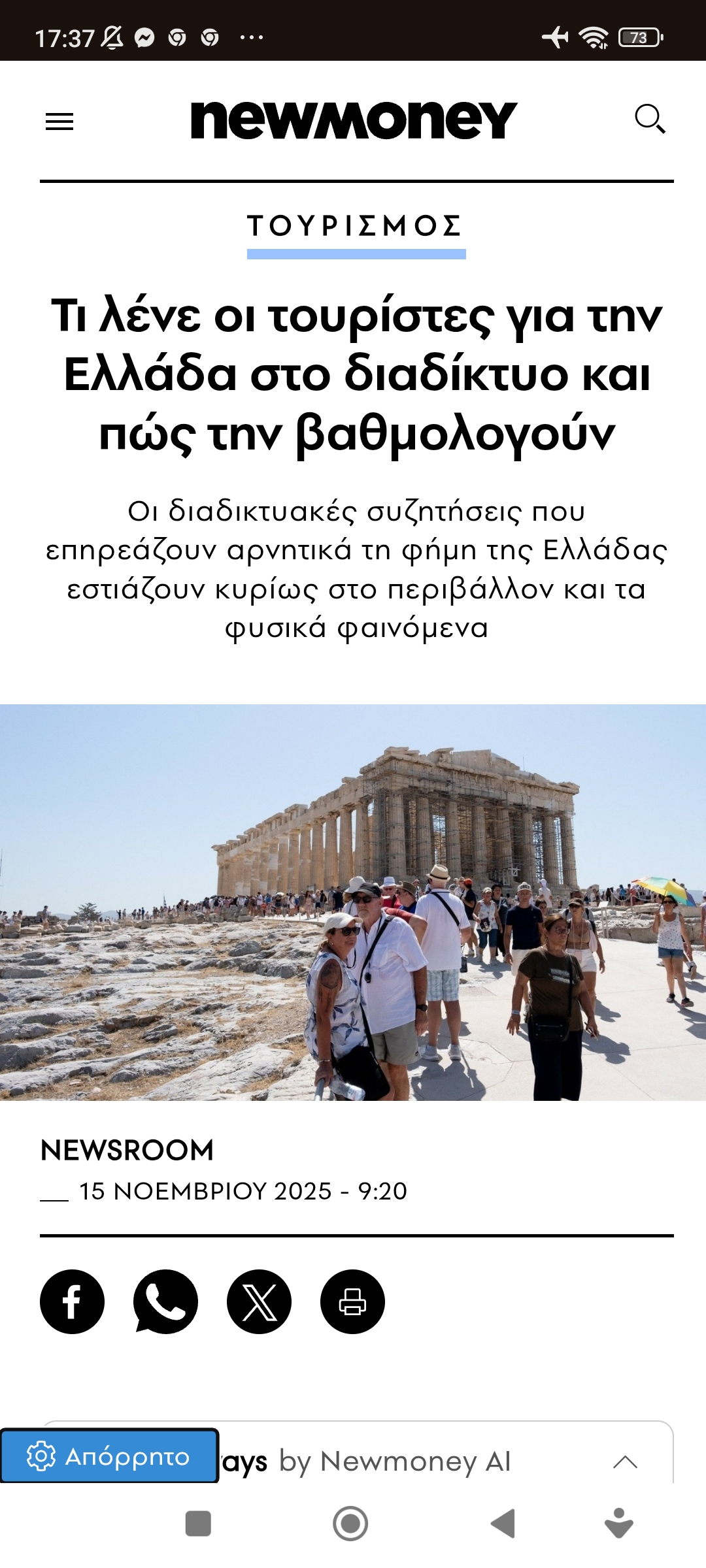 Ελλάδα / ΚύπροςΗ γνώμη των τουριστών για την Ελλάδα Πέτρος Ιωάννου5 μήνες ago5 μήνες ago01 mins Τι λένε οι τουρίστες για την Ελλάδα στο διαδίκτυο και πώς την βαθμολογούν Πλοήγηση άρθρων Previous: Η θέση του Πλάτωνα για τις σχέσειςNext: Gewan Island, Katara towers, Pearl, στη Ντόχα του Κατάρ Αφήστε μια απάντηση Ακύρωση απάντησηςΗ ηλ. διεύθυνση σας δεν δημοσιεύεται. Τα υποχρεωτικά πεδία σημειώνονται με *Σχόλιο * Όνομα * Email * Ιστότοπος Αποθήκευσε το όνομά μου, email, και τον ιστότοπο μου σε αυτόν τον πλοηγό για την επόμενη φορά που θα σχολιάσω.