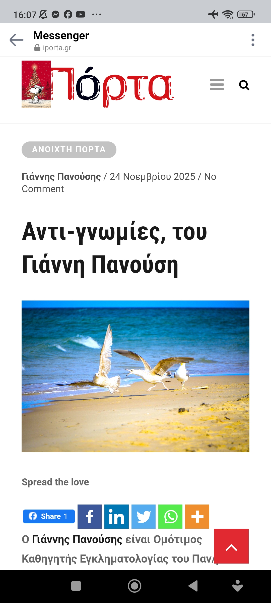 Απόψεις Κοινωνία / ΠολιτικήΑντι – γνωμίες Πέτρος Ιωάννου5 μήνες ago5 μήνες ago01 mins 24/11/2025 Αντι-γνωμίες, του Γιάννη Πανούση Πλοήγηση άρθρων Previous: Ο θάνατος του εμποράκου δεν θα μπορούσε να αποφευχθεί;Next: Το να ακούει κανείς είναι ουδέτερη έως αμυντική τακτική. Η ρητορική είν’ επιθετική Αφήστε μια απάντηση Ακύρωση απάντησηςΗ ηλ. διεύθυνση σας δεν δημοσιεύεται. Τα υποχρεωτικά πεδία σημειώνονται με *Σχόλιο * Όνομα * Email * Ιστότοπος Αποθήκευσε το όνομά μου, email, και τον ιστότοπο μου σε αυτόν τον πλοηγό για την επόμενη φορά που θα σχολιάσω.