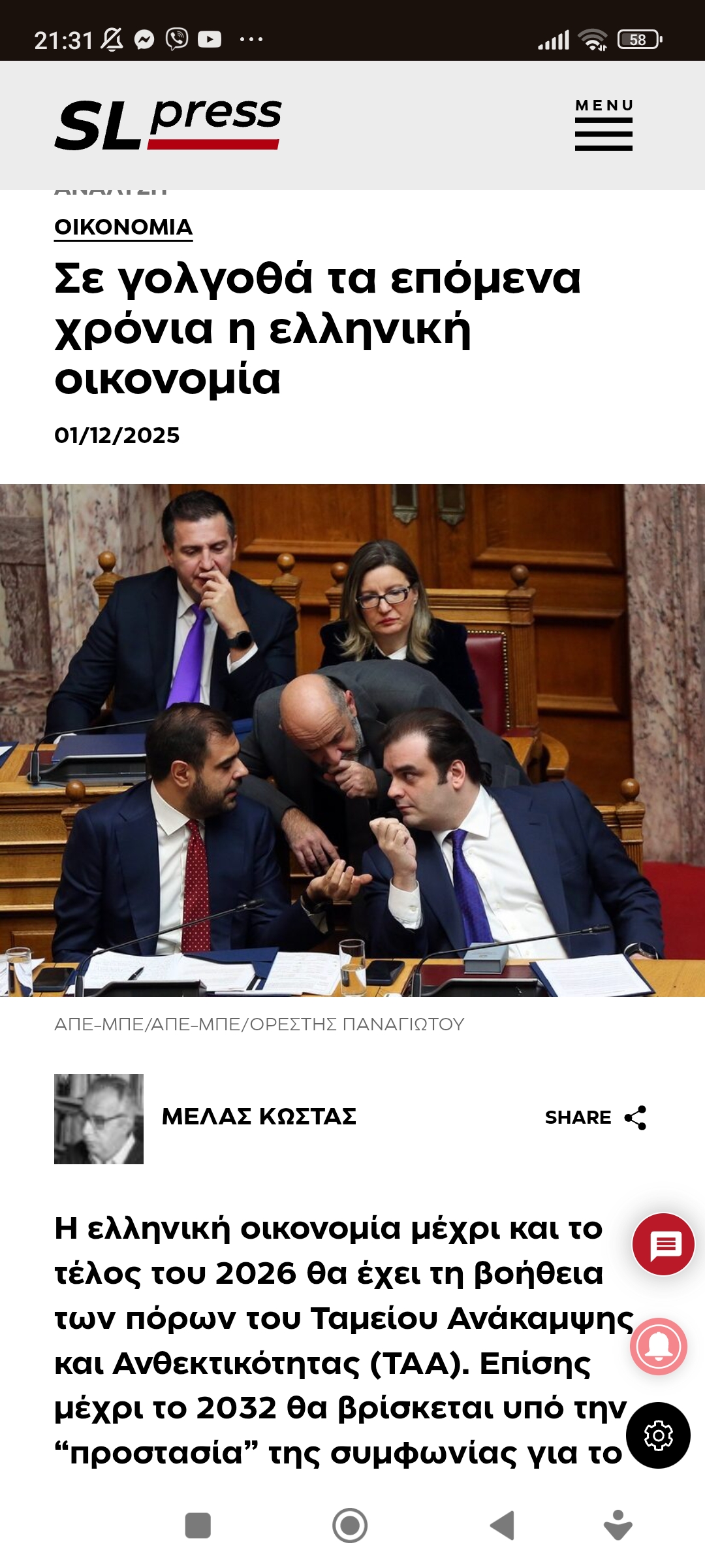 ΟικονομίαΓολγοθάς, τα επόμενα χρόνια στη ελληνική οικονομία Πέτρος Ιωάννου5 μήνες ago5 μήνες ago01 mins 1/12/2025 Σε γολγοθά τα επόμενα χρόνια η ελληνική οικονομία Πλοήγηση άρθρων Previous: Δεν είναι βαριά άρρωστες οι εξουσίες μόνον, είναι και η βάση που τις επιλέγει…Next: Εξελίξεις στα ενεργειακά Αφήστε μια απάντηση Ακύρωση απάντησηςΗ ηλ. διεύθυνση σας δεν δημοσιεύεται. Τα υποχρεωτικά πεδία σημειώνονται με *Σχόλιο * Όνομα * Email * Ιστότοπος Αποθήκευσε το όνομά μου, email, και τον ιστότοπο μου σε αυτόν τον πλοηγό για την επόμενη φορά που θα σχολιάσω.