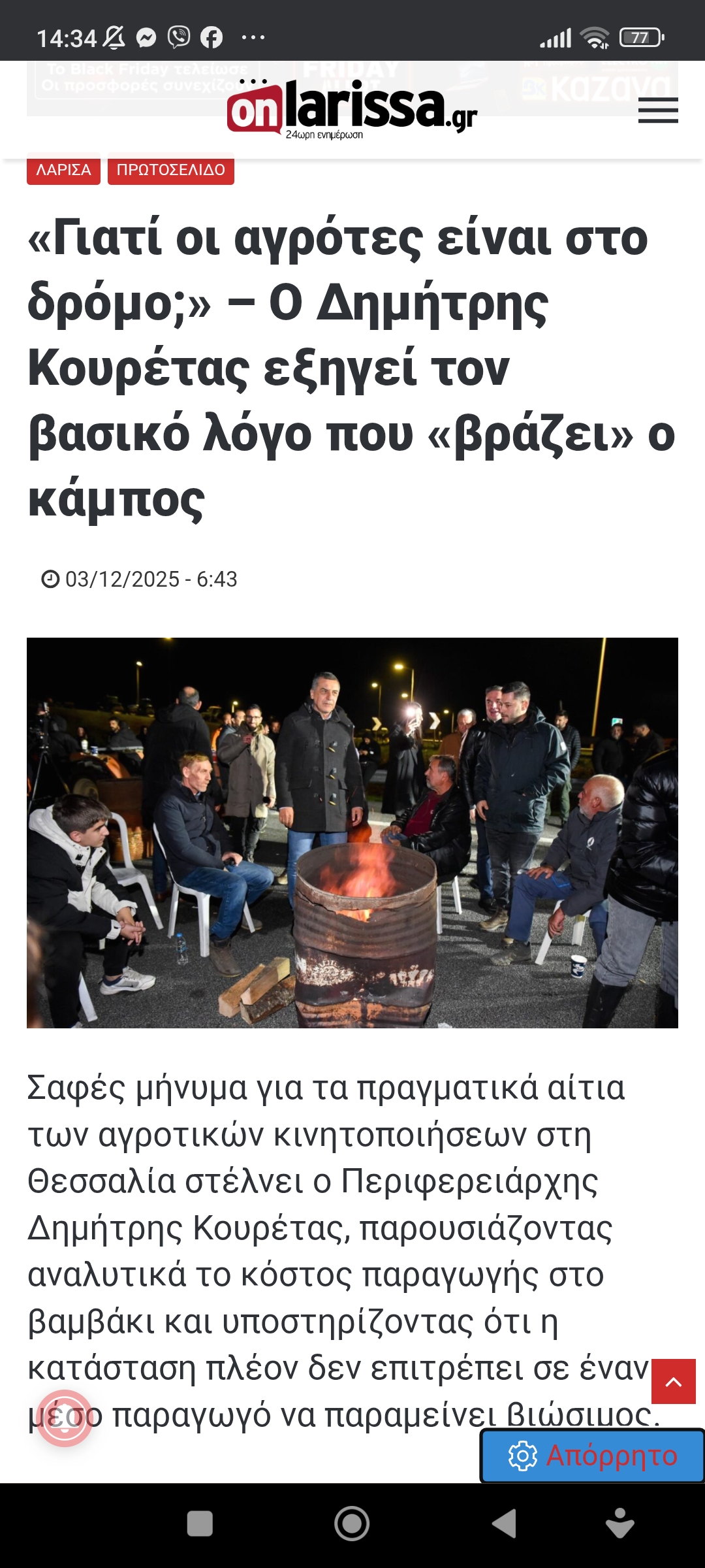 Θεσσαλία / ΛάρισαΚουρέτας: Βράζει ο κάμπος κι υπάρχουν λόγοι Πέτρος Ιωάννου4 μήνες ago4 μήνες ago01 mins 6/12/2025 https://www.onlarissa.gr/2025/12/03/giati-oi-agrotes-einai-sto-dromo-o-dimitris-kouretas-exigei-ton-vasiko-logo-pou-vrazei-o-kampos Πλοήγηση άρθρων Previous: Ασυνάρτητες κυβερνήσεις συνυπεύθυνες στο χάλι…Next: ΚΥΝΗΓΩΝΤΑΣ ΤΗΝ ΤΕΛΕΥΤΑΙΑ ΕΛΠΙΔΑ. ΜΑΡΙΑ ΚΑΡΥΣΤΙΑΝΟΥ Αφήστε μια απάντηση Ακύρωση απάντησηςΗ ηλ. διεύθυνση σας δεν δημοσιεύεται. Τα υποχρεωτικά πεδία σημειώνονται με *Σχόλιο * Όνομα * Email * Ιστότοπος Αποθήκευσε το όνομά μου, email, και τον ιστότοπο μου σε αυτόν τον πλοηγό για την επόμενη φορά που θα σχολιάσω.