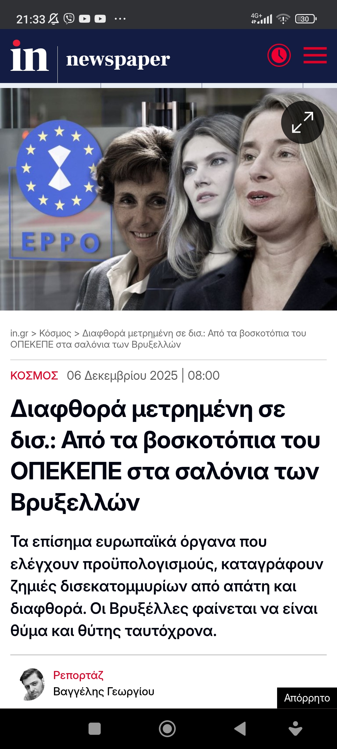 Eυρώπη / ΔιεθνήΔυστυχώς η διαφθορά εκδημοκρατίζεται κατά τη σκωπτική ρήση Πανούση Πέτρος Ιωάννου4 μήνες ago4 μήνες ago01 mins 6/12/2025 Διαφθορά μετρημένη σε δισ.: Από τα βοσκοτόπια του ΟΠΕΚΕΠΕ στα σαλόνια των Βρυξελλών Πλοήγηση άρθρων Previous: Σκίτσο του Γιώργου Μικάλεφ για το ThePressProjectNext: Τόχει η μοίρα των Ελλήνων στις εσχατιές της γης να μην έχουν απαντοχή απ’ τη μητέρα πατρίδα Αφήστε μια απάντηση Ακύρωση απάντησηςΗ ηλ. διεύθυνση σας δεν δημοσιεύεται. Τα υποχρεωτικά πεδία σημειώνονται με *Σχόλιο * Όνομα * Email * Ιστότοπος Αποθήκευσε το όνομά μου, email, και τον ιστότοπο μου σε αυτόν τον πλοηγό για την επόμενη φορά που θα σχολιάσω.